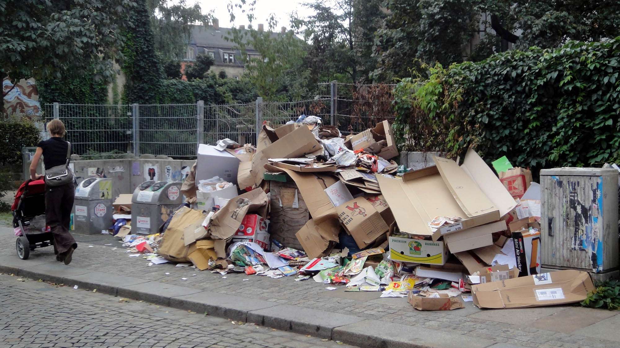 Ach, kaffeetante, als ich noch in der Sebnitzer Straße gewohnt habe, hatten wir da ganz andere Probleme als ein überlaufender Papiercontainer. Damals (1992) haben die Bewohner ihren Müll einfach in den kleinen Innenhof gekippt und als es eines Tages zu sehr gestunken hat, hatte jemand die Feuerwehr gerufen und die haben dann in der Nachbarwohnung aufgeräumt. Der älteren Dame war der Weg über den Hausflur zur Toilette zu weit und sie hat einfach in das zweite Zimmer ihrer Zweizimmerwohnung gekackt. Im Vergleich dazu ist ein bisschen Pappe und Papier auf der Straße nur ein Klacks.