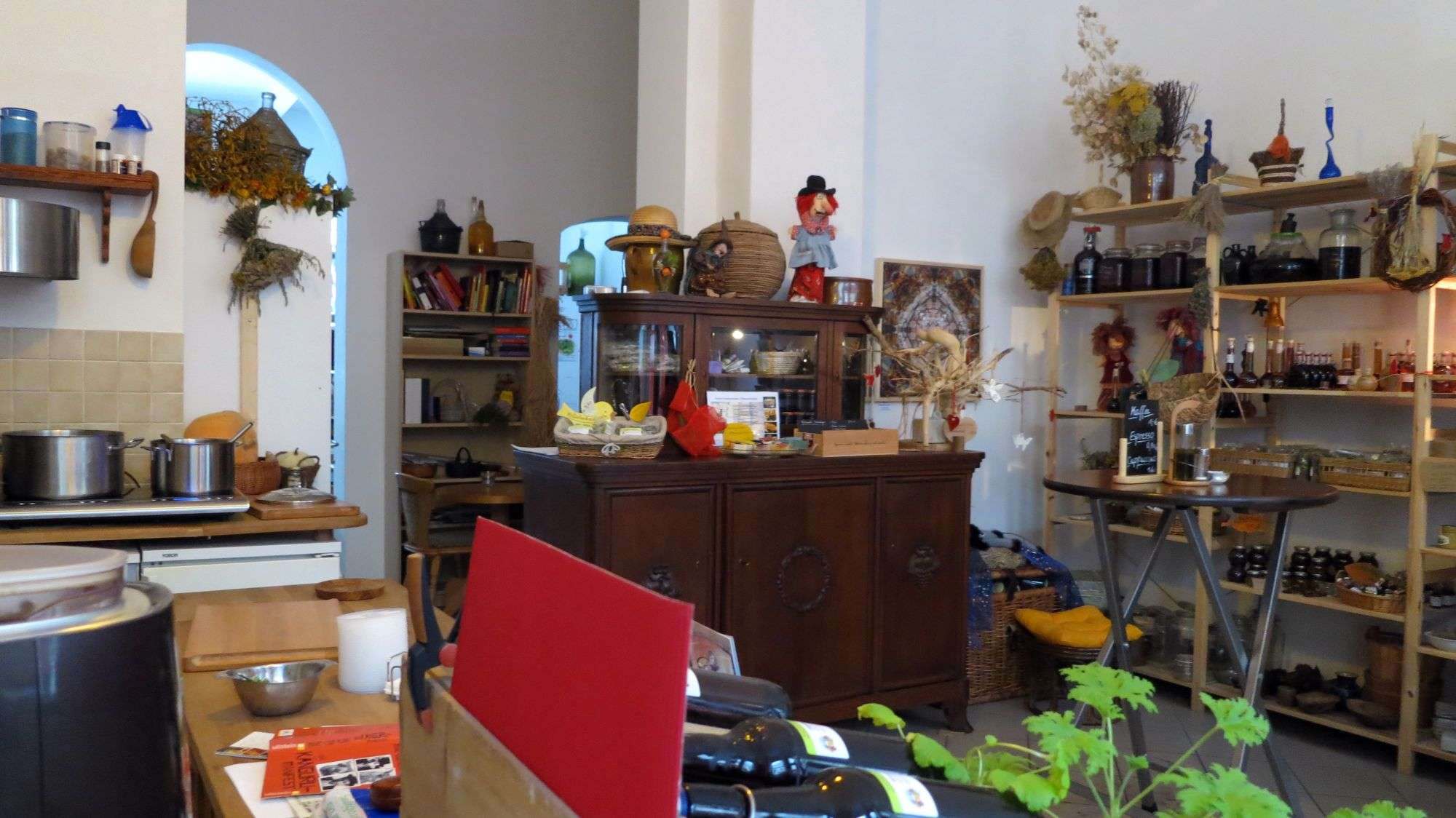 Der Laden ist kuschlig, eingerichtet mit wundervollen Accessoires, tausenden Kräutern, einem uralten Buffett und einer offene Küche. Für eilige Gäste gibt es Stehtische, alle anderen können sich nach hinten verziehen. Ich nehme am Tresen Platz, so habe ich das Geschehen im Blick. Katrin Lüdecke, die Inhaberin, hantiert am Herd. „Was darfs denn sein?“ – Ich bestelle das Tagesangebot. Im Handumdrehen ist mir aufgetan, sie streut noch ein paar Kräuter über die Speise und ich kann direkt loslegen. Nennt man das Fast-Food? Hackbraten in Paprika-Soße auf KartoffelpüreeWohl eher nicht, denn Kartoffelbrei und Hackbraten sind handgemacht und brauchen eine längere Vorbereitungszeit. Sie verwendet mehligkochende Kartoffeln, vom Garten-Nachbarn, berichtet sie auf Nachfrage. Der Geschmack stimmt, die Konsistenz hätte ich mir etwas fester gewünscht, aber da gehen die Wünsche bekanntlich auseinander. Der Hackbraten ist ein Gedicht, mit Erbsen und Möhren mittendrin. Die Paprika-Soße passt – ruckzuck ist mein Teller leer und eigentlich würde ich gern noch einen Teller nehmen, der Braten leckert mich. Aber die Vernunft siegt. Inklusive Himbeer-Brause bezahle ich 4,50 Euro. Großartig. Beschwingt ziehe ich von dannen.