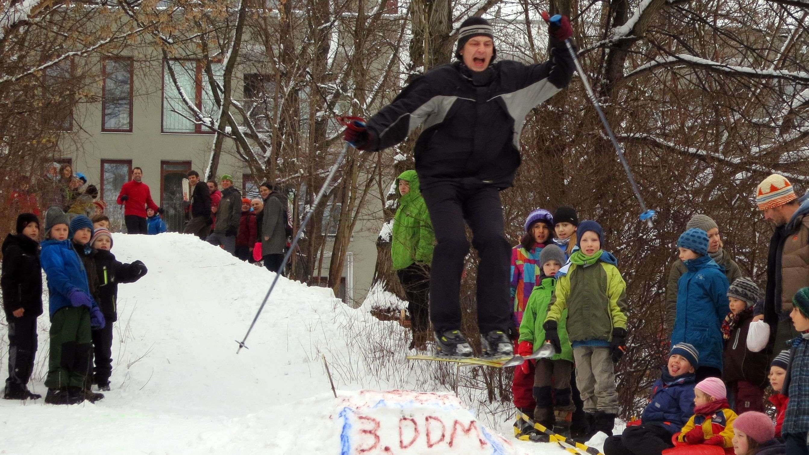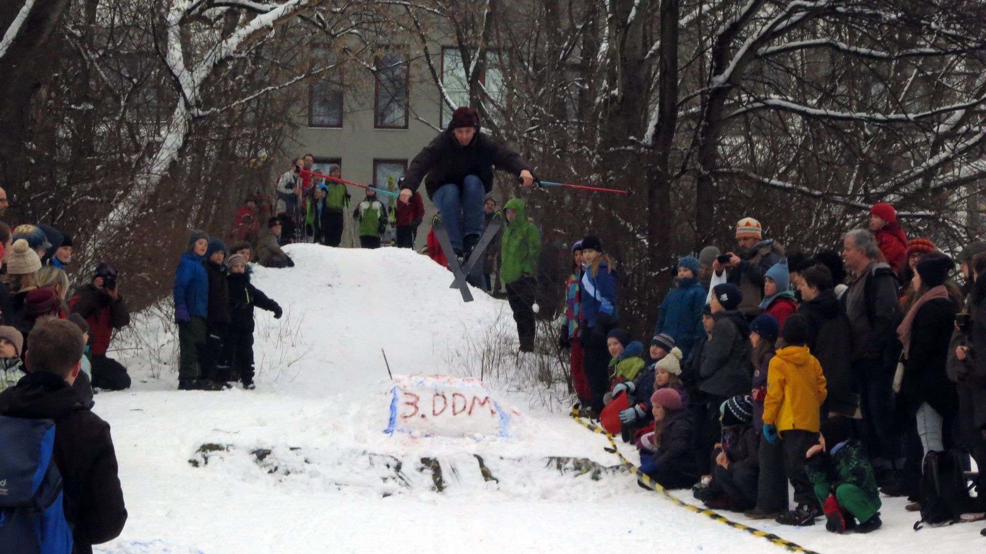 Die dritten internationalen offenen Dresdner Meisterschaften im Ski- und Snowboardfliegen (kurz DDM) waren ein voller Erfolg. Gefühlt tausend Besucher strömten auf den Alaunplatz, um die tollkühnen Madeln und Burschen zu bewundern. Es wurde Glühwein gereicht und das Skifliegen live kommentiert. Die Springer waren hochmotiviert. Eine extrem kritische und weitestgehend unbestechliche Jury verwendete neueste Technik (Augenmaß) zum Abschätzen der Weite. Tolle Choreografien gingen in die B-Note ein. Wie mir ein Jury-Mitglied hinter vor gehaltener Hand zusteckt, zählte im Wesentlichen aber die Weite.
