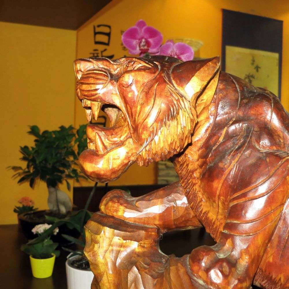 Koreanischer Tiger auf dem SprungDanach schwatzen wir doch noch ein bisschen. Ihr Chef, Hong-Kyan Shin, ist neu in Dresden. Er leitet schon ein koreanisches Restaurant – in Polen in der Nähe von Poznan. Und wie dort will er hier typische koreanische Küche anbieten, wenn es gewünscht ist ordentlich scharf. Zur Mittagszeit gibt es Angebote für 6,50 Euro. Und sie erklärt mir, was Sura bedeutet: „Mahlzeit für den König“ – Na, so habe ich mich auf jeden Fall hier gefühlt.