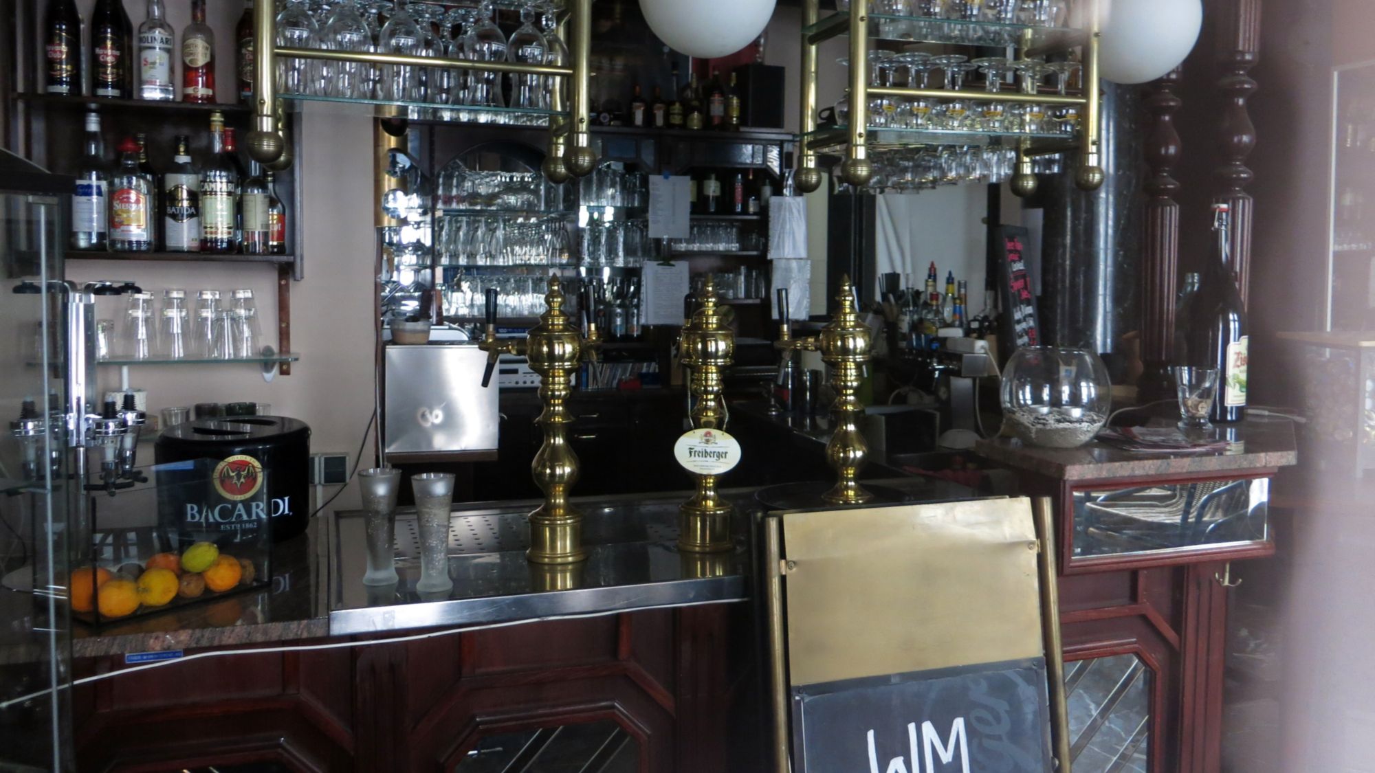 Einst war hier das Kim-Asia-Haus drin und davor mal das Café Marrakech. Das Besondere an den Räumen, sie sind im maurischen Stil ausgebaut. Und die Innenraumgestaltung steht genauso unter Denkmalschutz, wie das ganze Haus. Das Weltbierhaus hatte im April 2013 eröffnet und zielte auf experimentierfreudige Biertrinker. Nun ist erstmal geschlossen und der Hinweis auf die Weltmeisterschaft staubt vorm Tresen langsam aber sicher ein, auf der Facebook-Site ist der letzte Eintrag aus dem Mai, telefonisch ist die Kneipe auch nicht mehr zu erreichen.