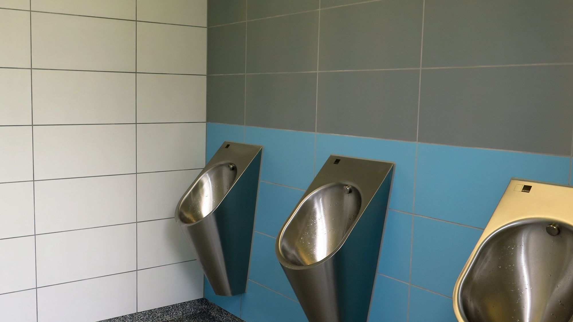 Es gibt einen Raum für eine Behinderten-Toilette, ein Pissoir mit drei Becken, ein Damenklo plus Wickelraum und ein Herrenklo fürs große Geschäft. Zurzeit sind die Räume innen noch unglaublich unbeschmiert. Und auch in der Außengestaltung hat sich was getan. Das gereckte Glied wurde in einen kleinen grünen Katus verwandelt. Ortsamtleiter André Barth kämpft weiterhin darum, dass an dem Häuschen eine legale Graffiti-Fläche entsteht, aber die Chancen darauf sind gering.