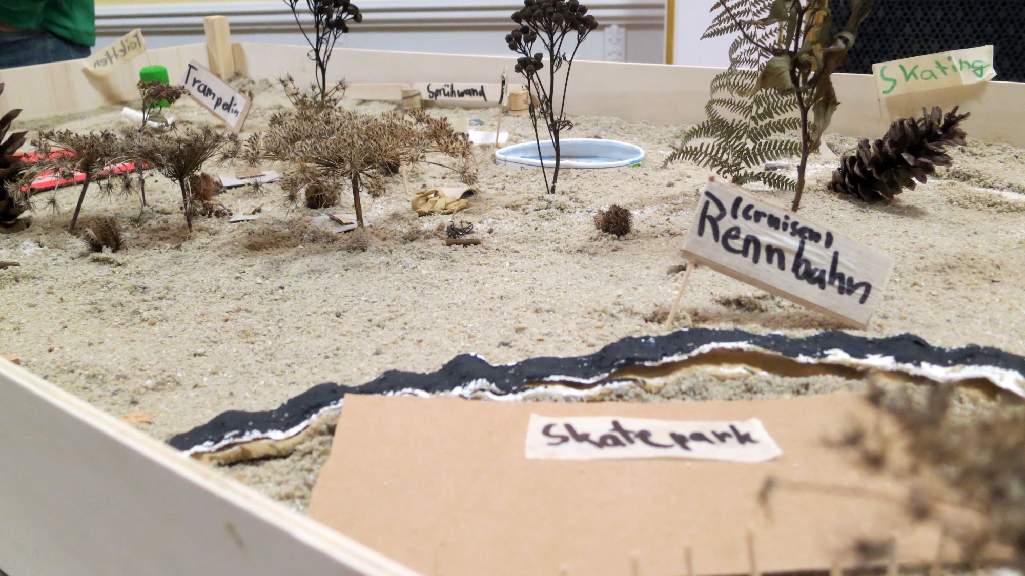 Modell Russensportplatz – So sollte es mal werden.Die Kosten für den ersten Bauabschnitt der „Westerweiterung“ Alaunplatz betragen 310.000 Euro. Außerdem hat die Stadt Dresden 1600 Euro Spenden für einen Teil der Bäume und Bänke verwendet.
