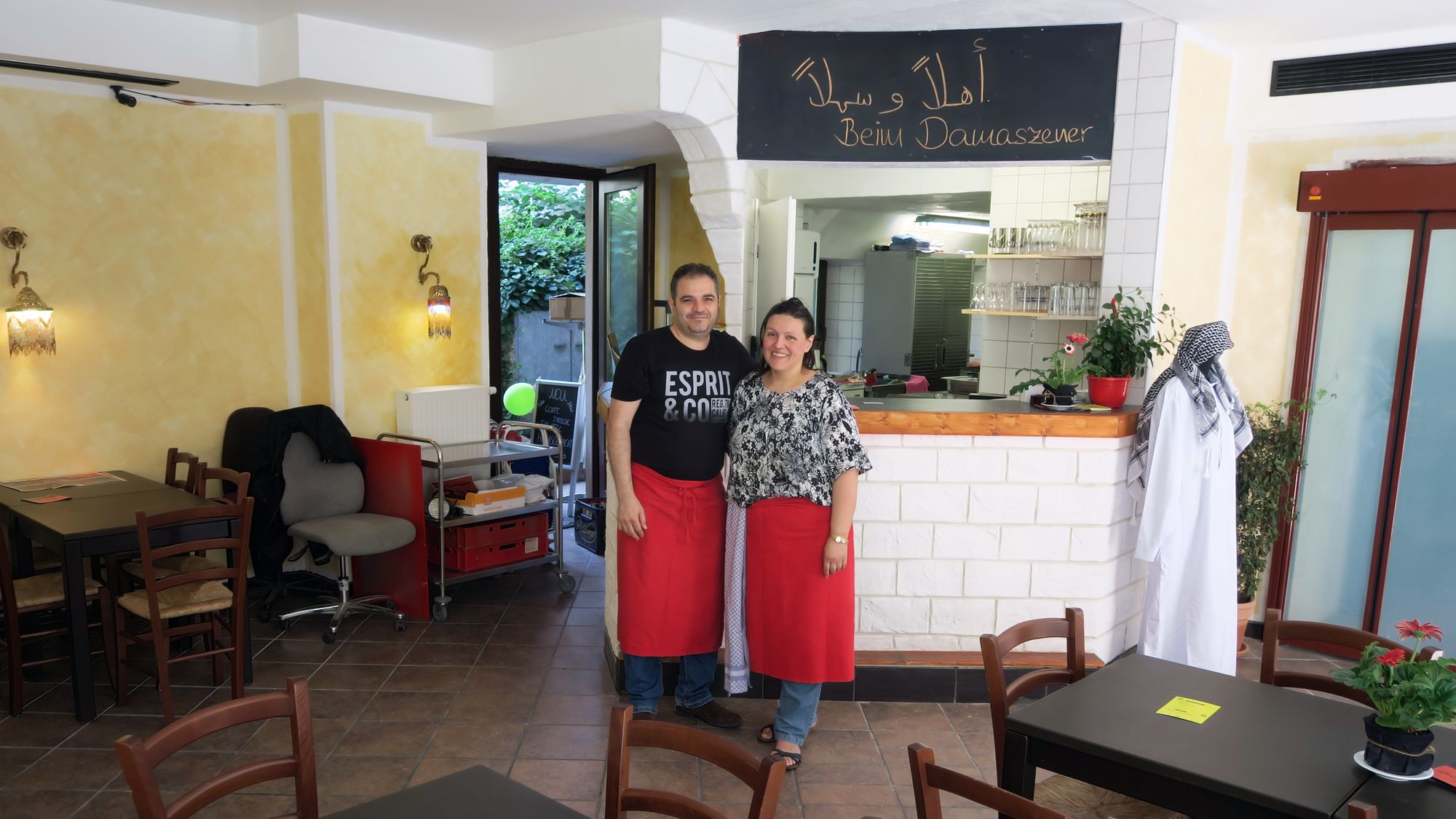 Beate Amairi mit Schwager und Koch Feda.Gastronomisch sind die beiden Neueröffnungen. Vor zwei Tagen hat der „Damaszener“ auf der Kamenzer Straße aufgemacht. Beate Amairi ist mit ihrem Mann Nedae von der Martin-Luther-Straße hergezogen (Neustadt-Geflüster vom 27. April 2011). Dort hatten sie ein kleines Geschäft für syrische Einrichtungsgegenstände. Aber es wird immer schwieriger an solche Ware heranzukommen. Dann ergab sich die Gelegenheit, weil sich die Magnolia-Shisha-Lounge verkleinern wollte. Jetzt gibt es an der Ecke Kamenzer-/Louisenstraße also syrische Küche. Täglich ab 12 Uhr.