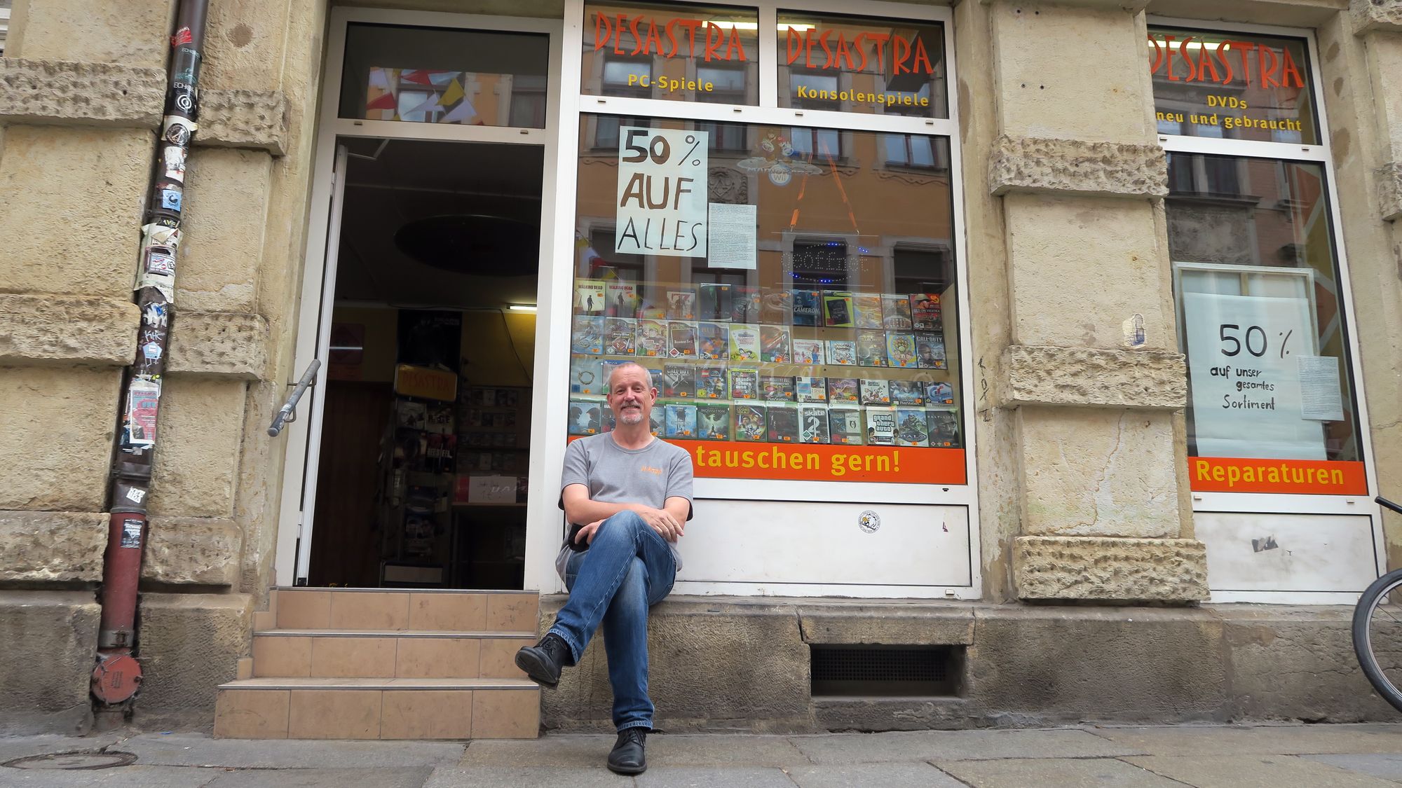 Konrad Stransky schließt das Desastra.Konrad gibt seinen Laden auf. „Ich kann doch nicht mit 60 oder 70 noch weiter Videospiele an Teenager verhökern“, schmunzelt er. Das Desastra, der Laden für gebrauchte Video- und Konsolenspiele auf der Louisenstraße schließt zum Ende Juni. Nach 13 Jahren sei es an der Zeit, Tschüß zu sagen.