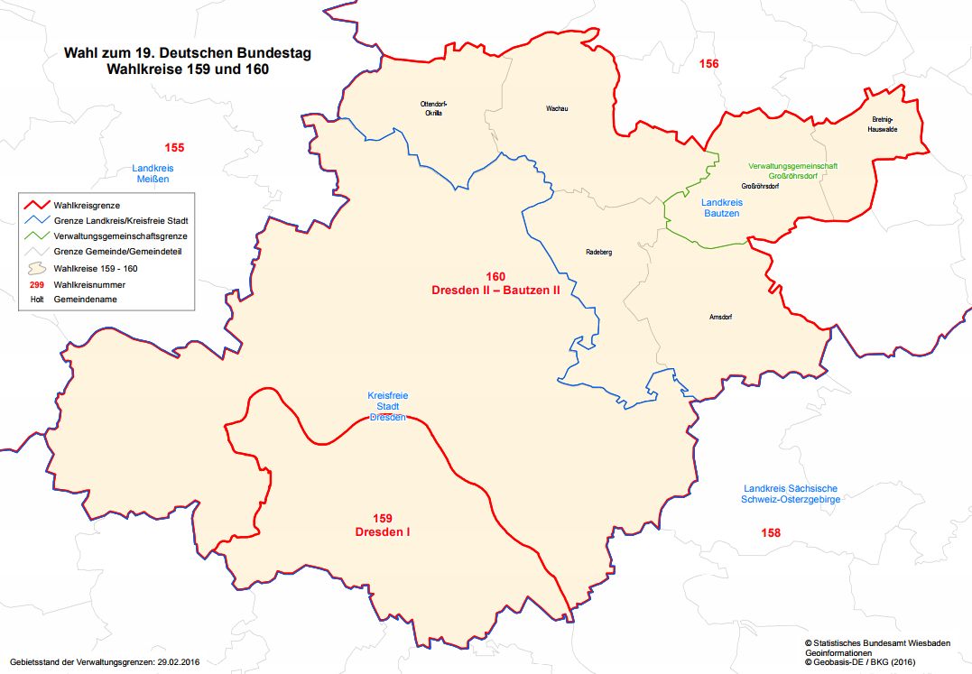 Bei der Bundestagswahl 2005 war Dresden II noch mit Meißen I ein Wahlkreis.