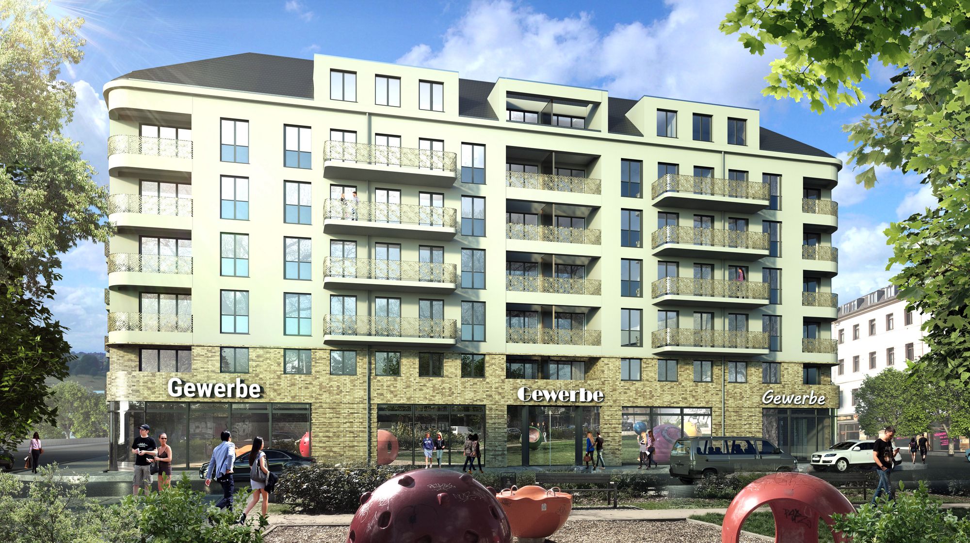 Sehr, sehr schön!„Die anspruchsvolle Fassadengestaltung verbindet die umgebende Gründerzeitbebauung der Neustadt mit zeitgenössischen Elementen zu einem modernen und angemessenen Gebäudeauftakt zum Bischofsplatz.“…..