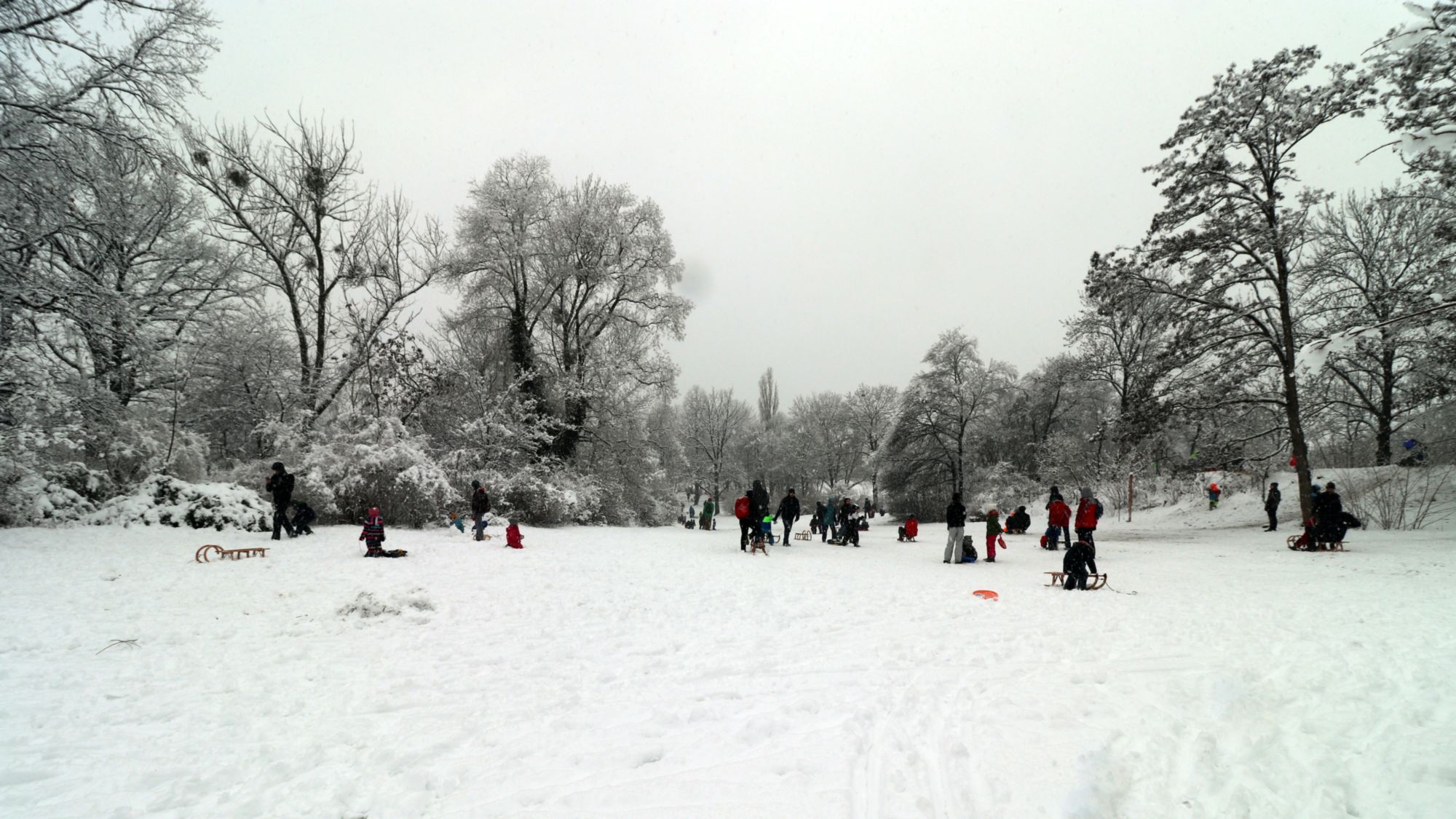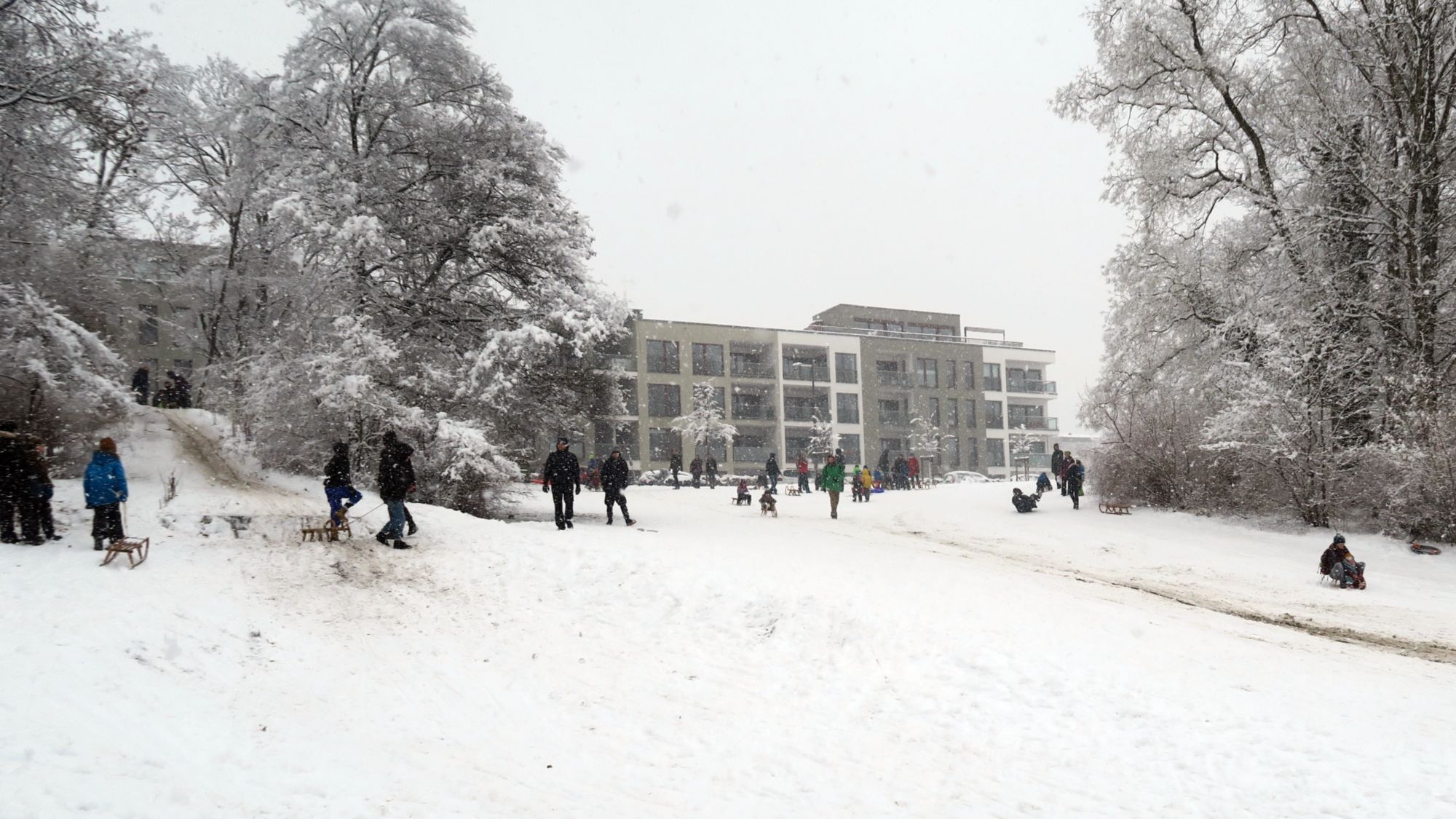 Der kleine Rodelhang war stark besucht, einzelne Langläufer tourten über den Platz und Schneemänner und Schneefrauen und Iglus wurden haufenweise gebaut. Der sehr feuchte Schnee pappt aber auch prima.