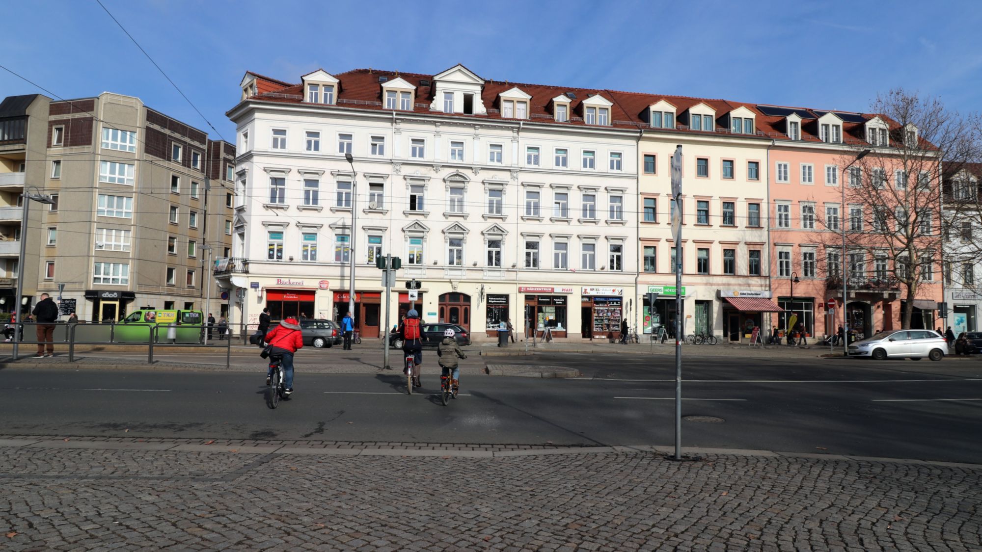 Dass die Ampel den „Verkehr nicht behindern“ soll, wird sich zeigen. Im besten Fall wird in Richtung Bhf. Neustadt die neue Ampel für Autos und Radfahrer gleichzeitig grün – und bis man an der Fahrradampel am Albertplatz ist, ist diese schon wieder rot. Das wäre dann aber immerhin eine konsequente Fortsetzung der aktuellen Fahrradampelschaltung vom Albertplatz entlang der B6 bis zum Bahnhof Mitte. Da hat es die Stadtverwaltung noch an jeder Kreuzung hinbekommen, dass die Radfahrerampel rot zeigt, währenddessen die Autos noch eine ganze Weile geradeaus fahren dürfen.