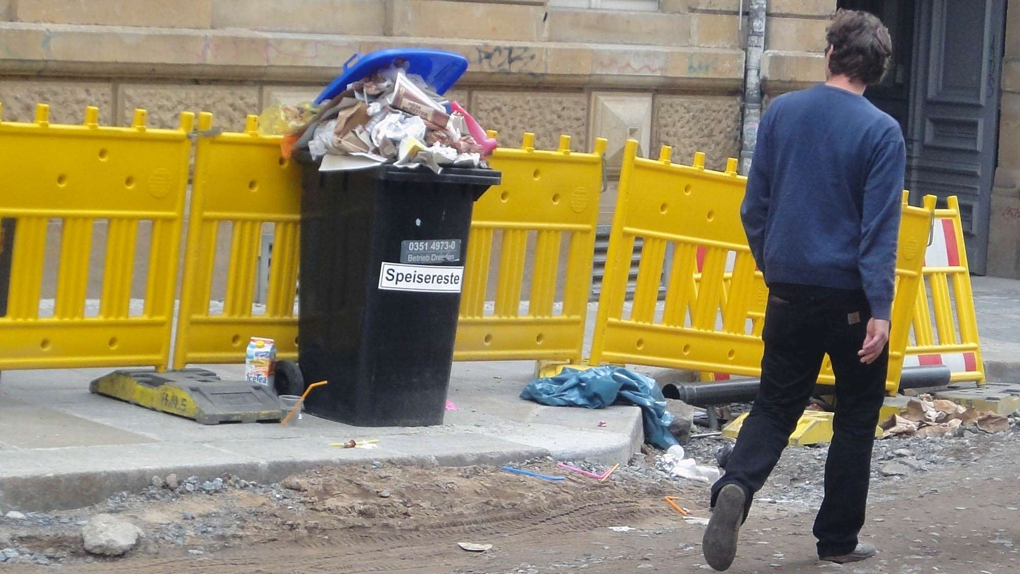 Vermutlich war jemand unachtsam, und die Tonne wurde, auf Grund der Bauarbeiuten, von ihrem Standplatz entfernt.