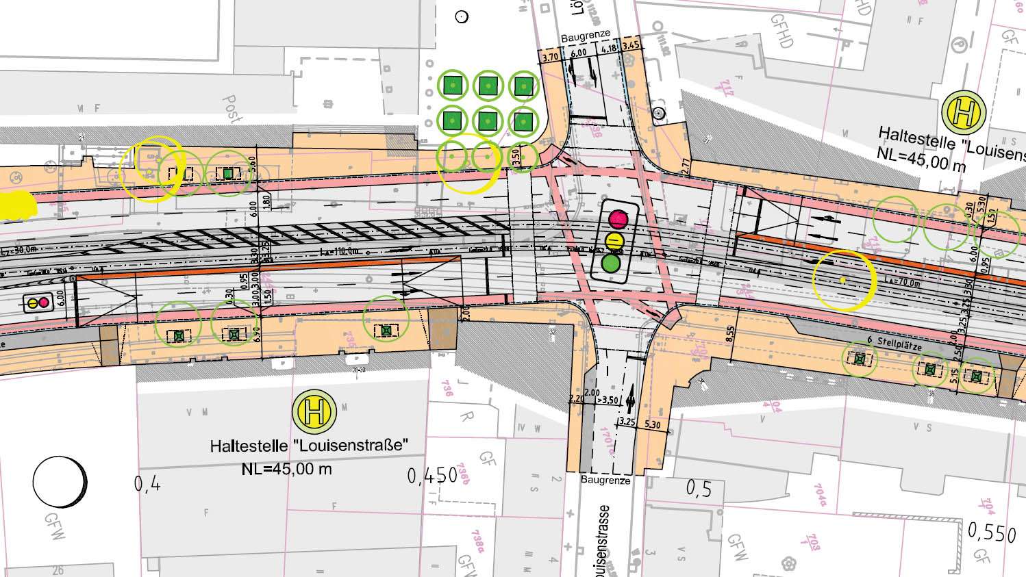 Vier Spuren – Verwaltungsvariante von 2011 – Anklicken zum Vergrößern