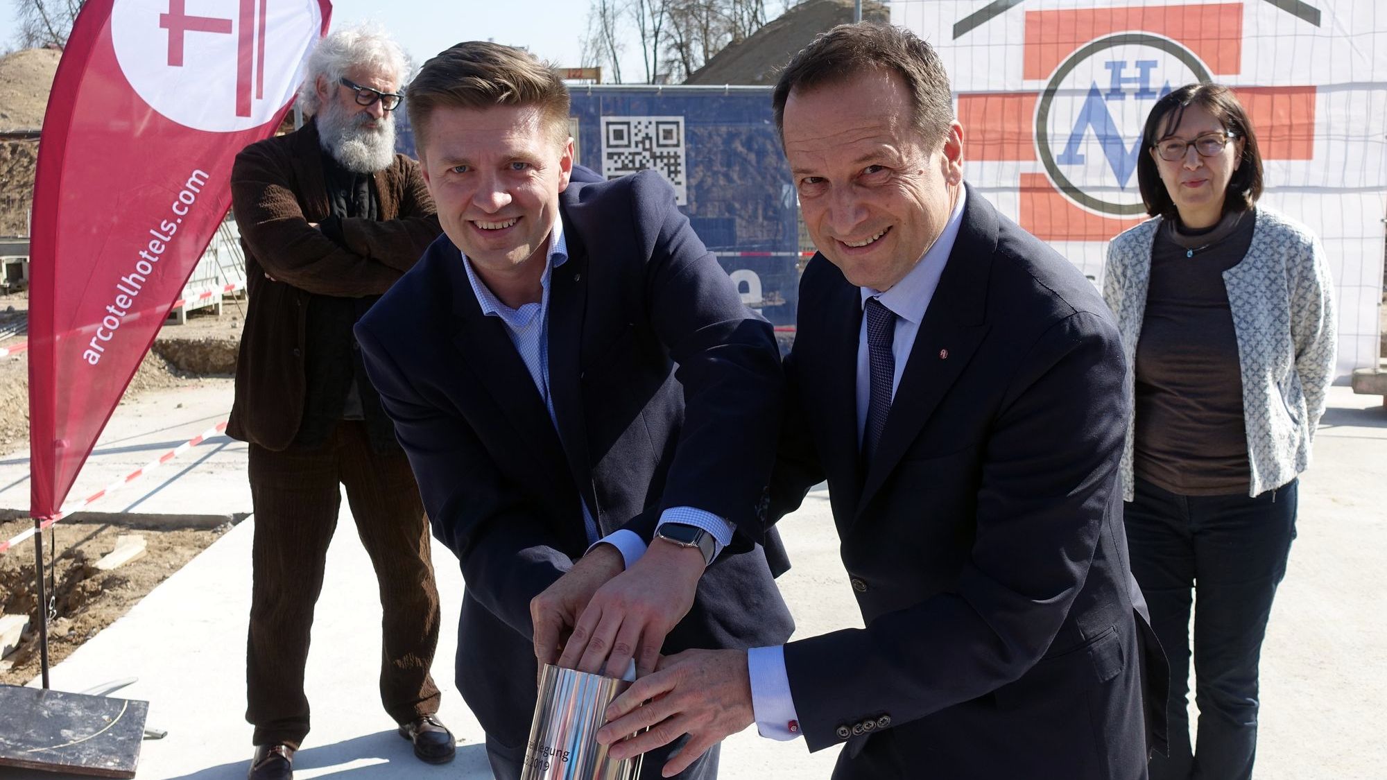 Eigentümerin Renate Wimmer, deren verstorbener Mann das Unternehmen vor 30 Jahren gegründet hatte, und Martin Lachout, Vorstand der Arcotel Hotel AG lobten heute die Zusammenarbeit mit dem Bauherren USD Immobilien und zeigten sich zuversichtlich, dass die langfristig angelegte Kooperation ein Erfolg werde. Jürgen Nufer von USD Immobilien erinnerte daran, dass die Entscheidung für einen Hotelneubau auf Vorschriften im Bebauungsplan zurückgingen. „Es sollte ein Gewerbebau werden, warum also nicht ein Hotel. Das ist auch für die USD Neuland“, fügte er hinzu.