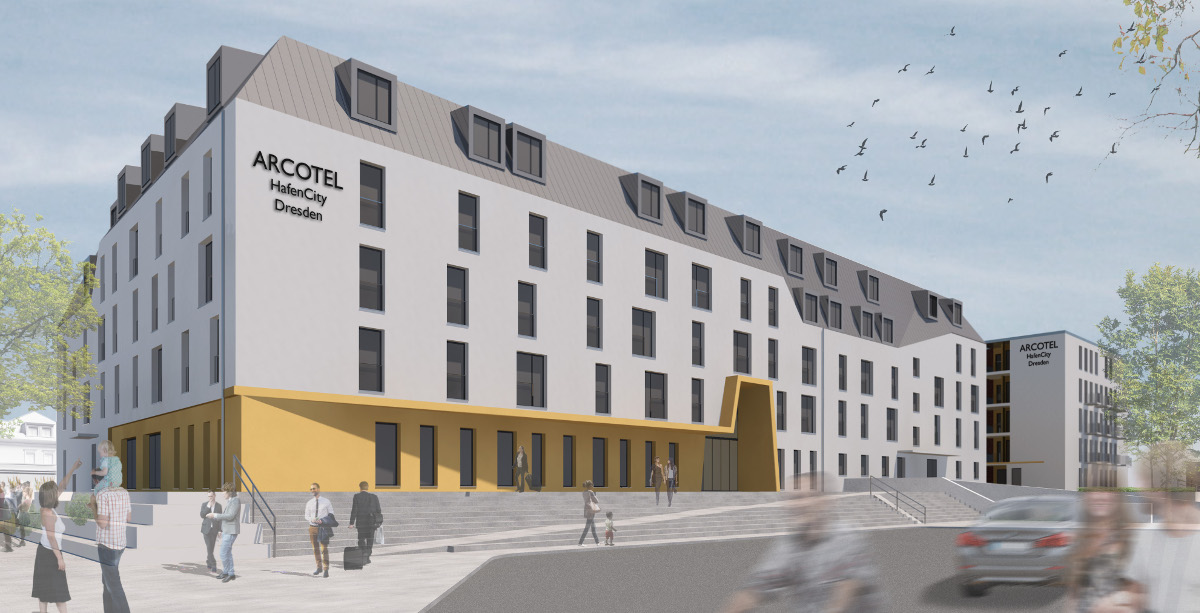 Mit einer 300 Quadratmeter großen Terrasse, einem Restaurant und einer Bar wollen die Betreiber des neuen Hotels in der Hafencity auch für die Anwohner in der Neustadt und in Pieschen ein attraktives Angebot schaffen. Terrasse und Restaurant werden vom Elberadweg gut erreichbar sein. Das soll helfen, mögliche Schwellenängste zu überwinden, sagte Arcotel-Projektmanager Florian Hütter gestern am Rande der feierlichen Grundsteinlegung. „Wiener Schnitzel und Kaiserschmarrn werden auf jeden Fall auf der Speisekarte stehen“, versprach er. Die Atmosphäre in der Hafencity erinnere ein wenig an den Donaukanal in Wien, meinte er. Dort hat die Hotelgruppe, die ein reiner Familienbetrieb ist, ihren Sitz.