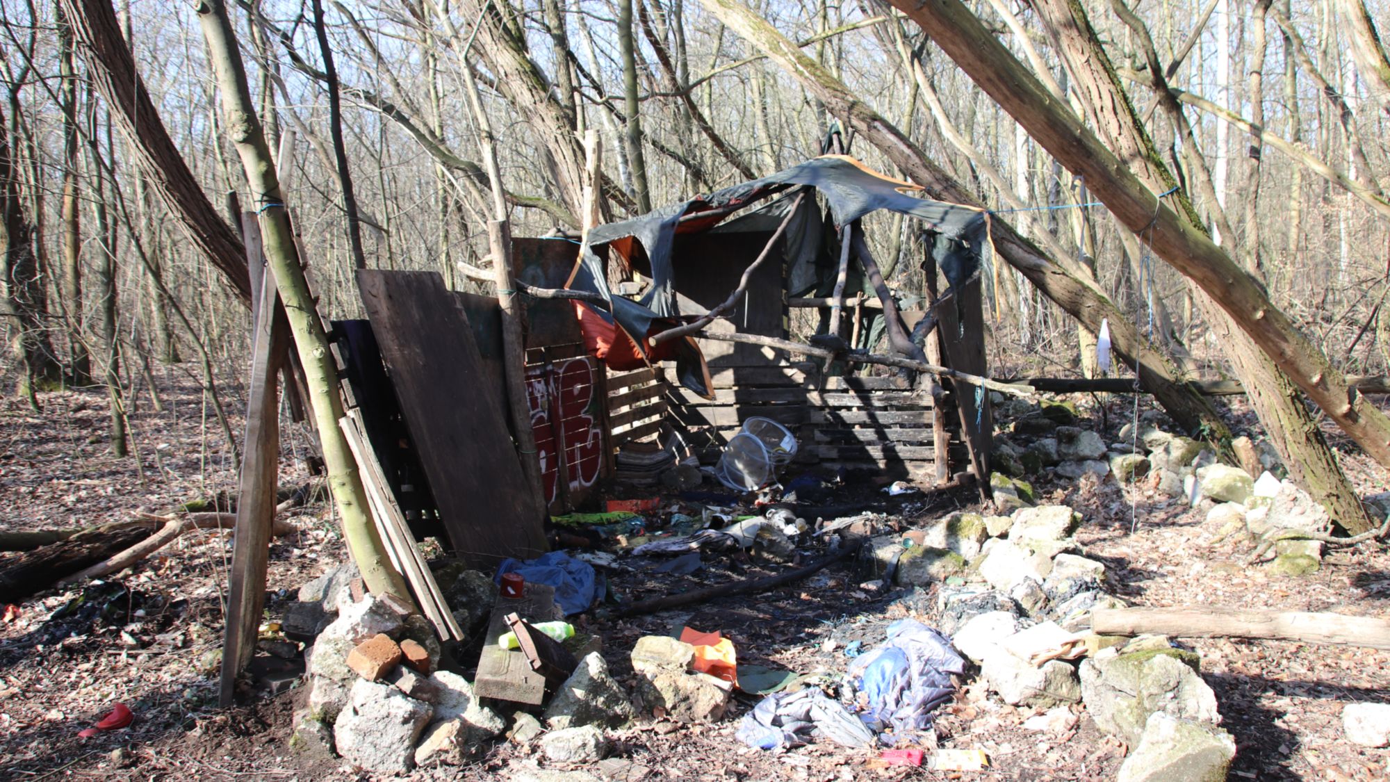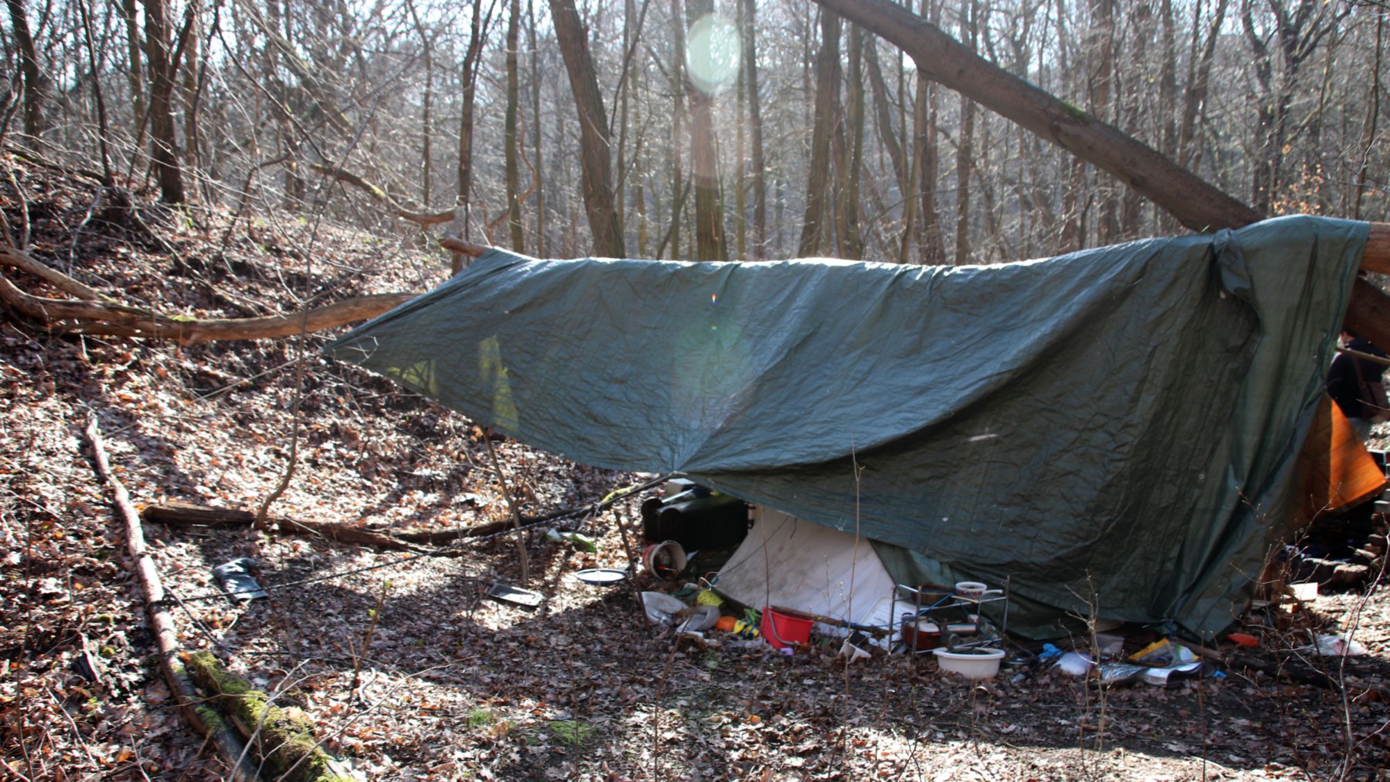 „Solange dafür herumliegendes Holz verwendet wird, ist dagegen auch nichts einzuwenden“, sagt Konstantin Schanze vom Sachsenforst. Doch in den vergangenen Wochen haben seine Kollegen in der Heide immer wieder Hütten entdeckt, die zum Teil mit Plastikplanen, Zelten und allerlei Campingutensilien gebaut sind.