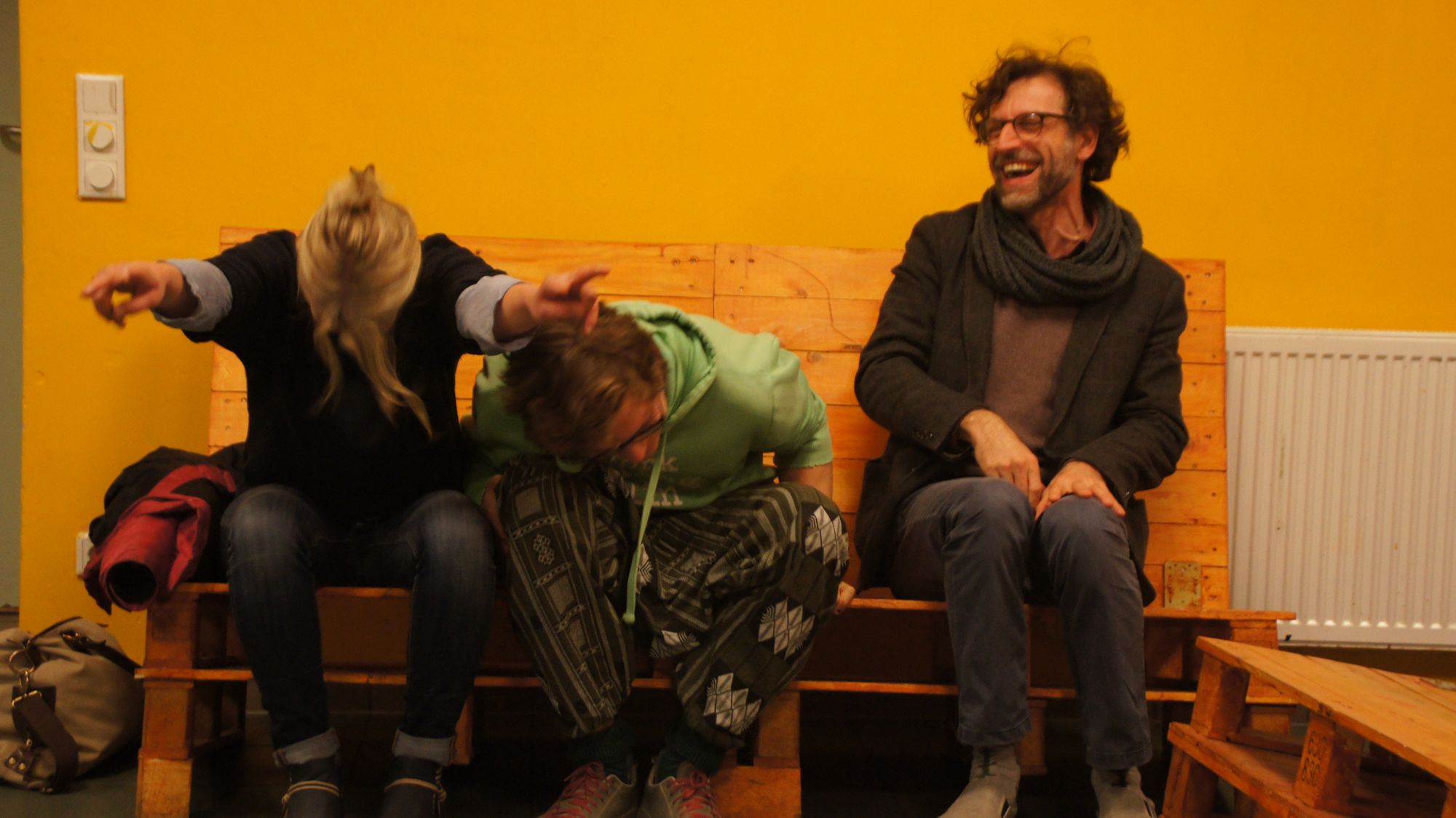 „Ich hatte solche Angst, dass mir die Beine gezittert haben“, sagt Kerstin über den ersten Auftritt der Impro-Theater-Gruppe „Elchtest“. Gemeinsam mit Bene gehört sie zu den Gründungsmitgliedern der mittlerweile zehnköpfigen Crew, die sich vor zwei Jahren als Ableger der Freien Spielkultur entwickelte. Nun hat „Elchtest“ zur langen Nacht der Theater im Stadtteilhaus „Wanne“ seine Premiere auf die Bühnenbretter gelegt – und erntete so viel Begeisterung, dass es gleich weiter gehen kann. Von Angst keine Spur. Ich durfte bei einer Probe dabei sein.