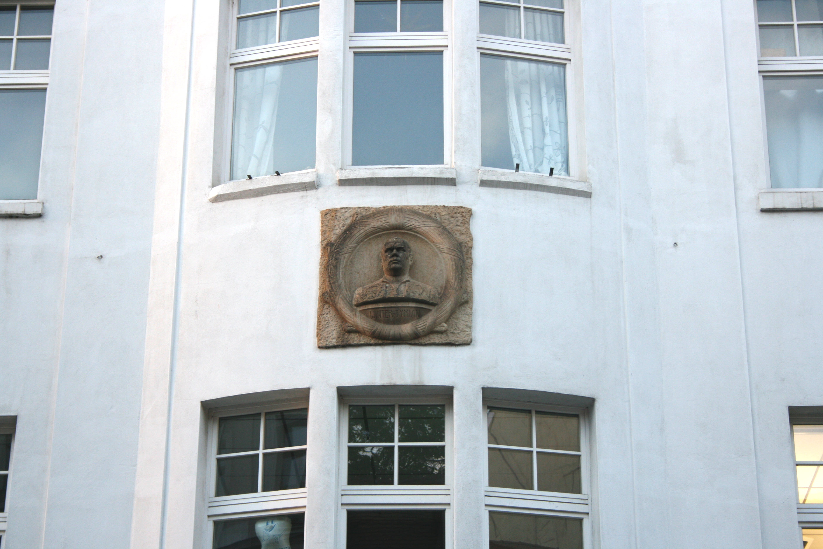 Wer sich die Louisenstraße 55 genauer anschaut, erkennt das Bild von Emil Winter-Thymian (1860 – 1926) – ein Dresdner Sänger und Humorist, dem das Kino „Thymians Thalia Theater“ im Hinterhaus gehörte – also fast an der gleichen Stelle, wo sich seit 2005 das Thalia-Kino befindet. Es schließt an die ehemalige Ladenkinotradition aus den Anfängen des 20. Jahrhunderts an. Dabei wurde in den Nebenräumen von Lebensmittelläden für wenig Geld Kino angeboten.