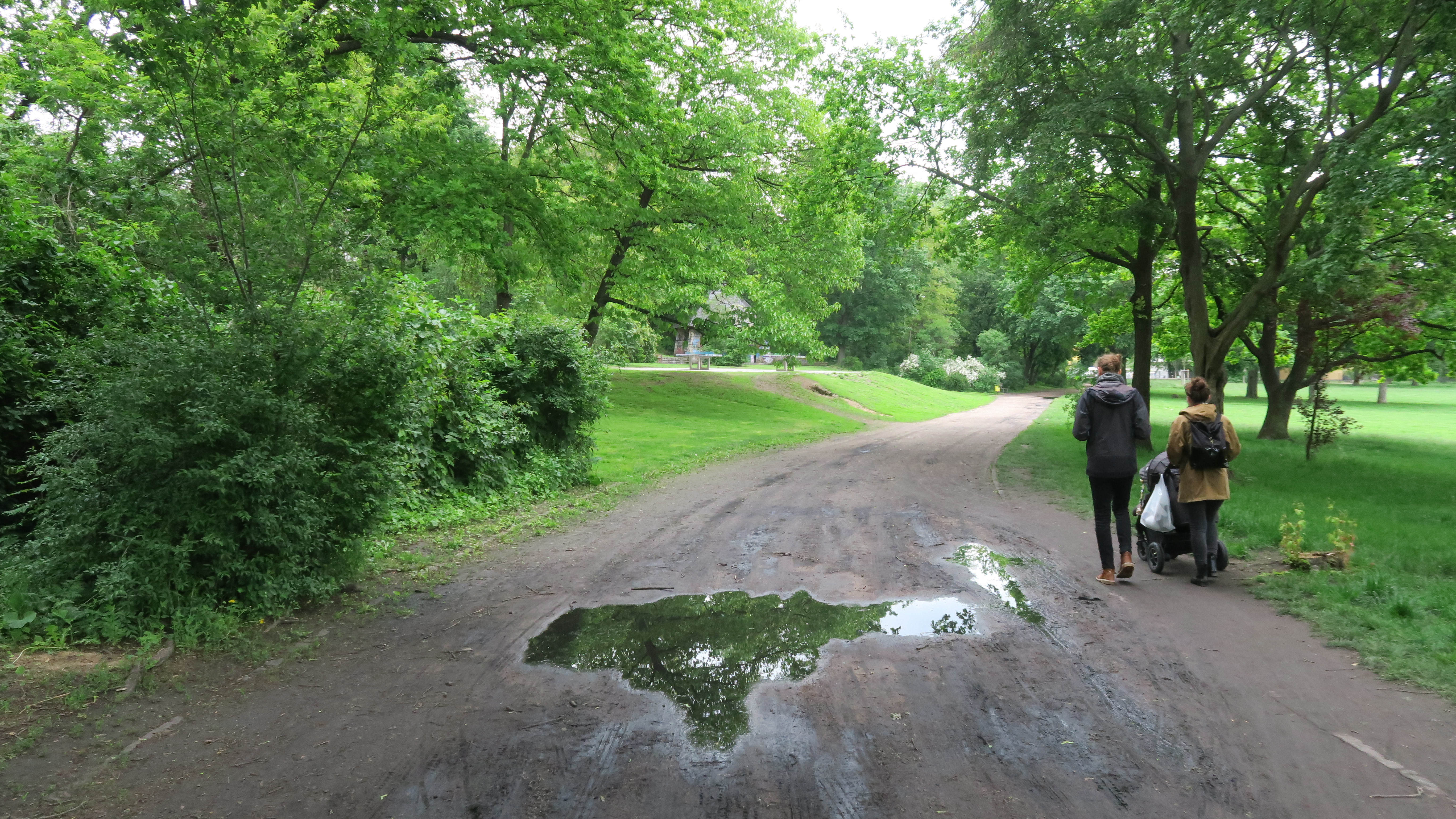 Nach dem Regen der letzten Tage haben sich auf den Wegen des Alaunplatzes einige große Pfützen gebildet. Radfahrer, Spaziergänger, Gassigänger und alle die außerdem im Park unterwegs sind, müssen ausweichen, wenn sie keine nassen Füße haben wollen. Doch damit soll bald Schluss sein.