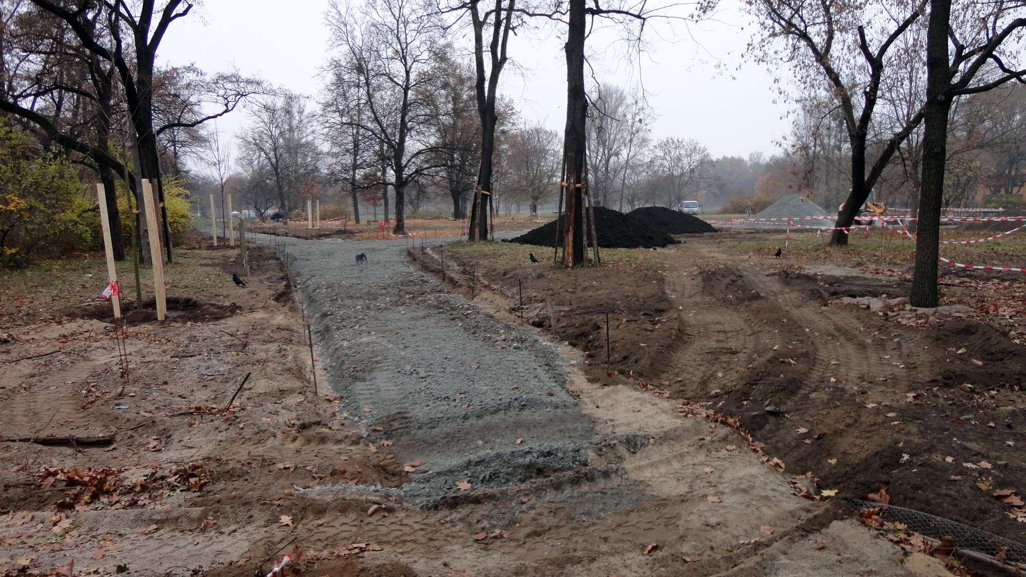 Zurück zum Park: Schauen wir mal, ob die Bäume und Sträucher alle gut einwachsen. Ich wünsche es auf jeden Fall. Überall werden zu dieser Zeit Parks und Gärten winterfest gemacht bzw. sind sie es schon. Im Alaunpark fängt man bei frostigen Temperaturen an zu buddeln. Aber war ja letztes Jahr auch nicht anders…