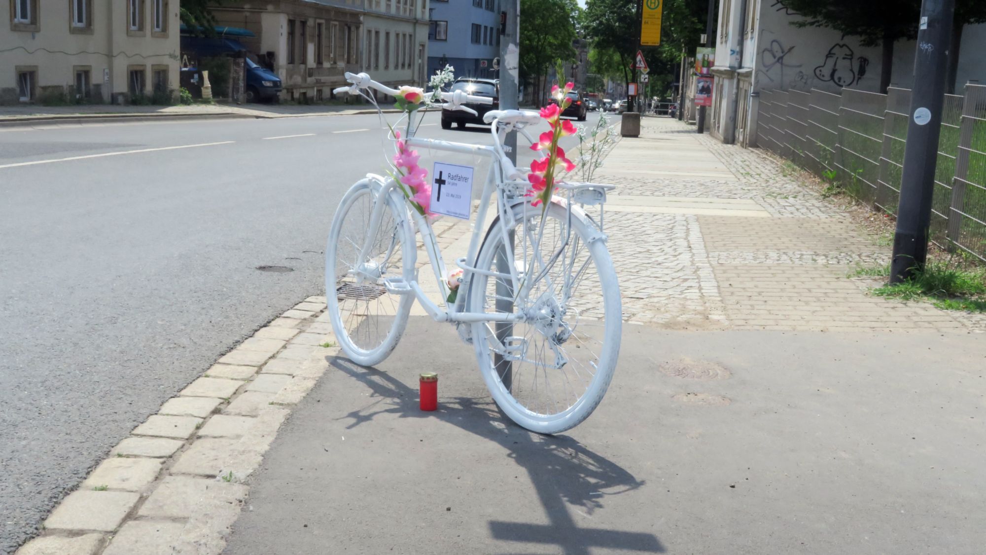 Seit heute steht an der Kreuzung Rudolf-Leonhard-Straße Stauffenbergallee ein Ghostbike. Es erinnert an den gestern an dieser Kreuzung getöteten Radfahrer. Es ist bereits das achte Ghostbike in Dresden. Am Nachmittag gab es vor Ort eine Mahnwache.