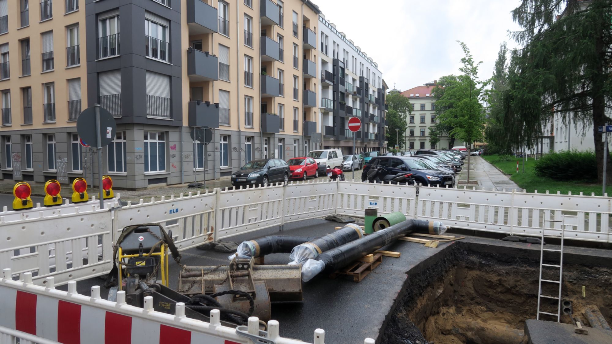 Seit gestern bis voraussichtlich 16. Juni ist die Weintraubenstraße im Bereich der Kreuzung Tieckstraße gesperrt. In Richtung Elbe müssen Autos über die Tieck- und die Glacisstraße ausweichen. In Richtung Bautzner Straße über die Lessingstraße.