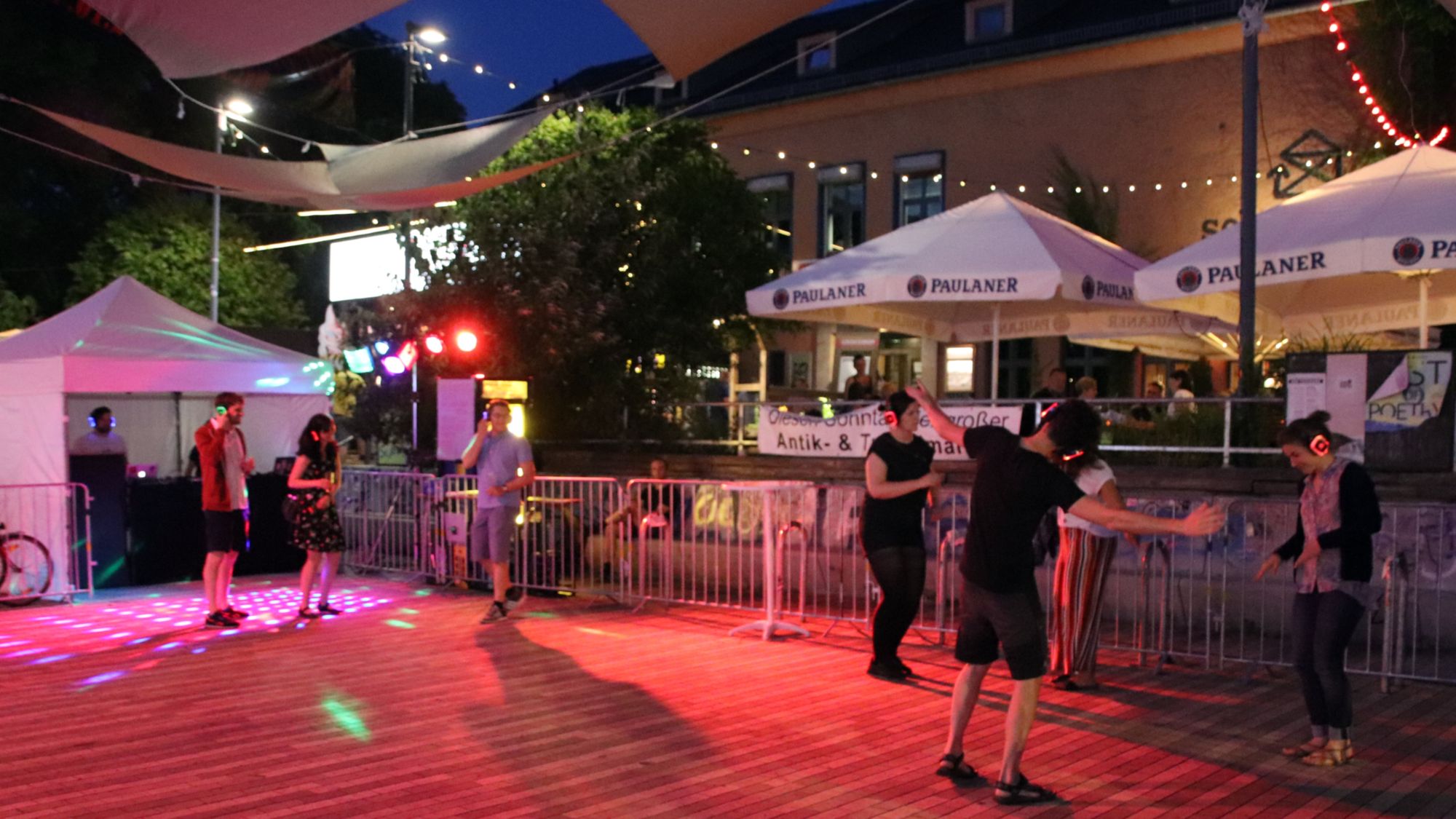 Wie Party richtig leise geht, zeigte gestern die Scheune-Crew auf dem Vorplatz mit einer Kopfhörer-Disco.