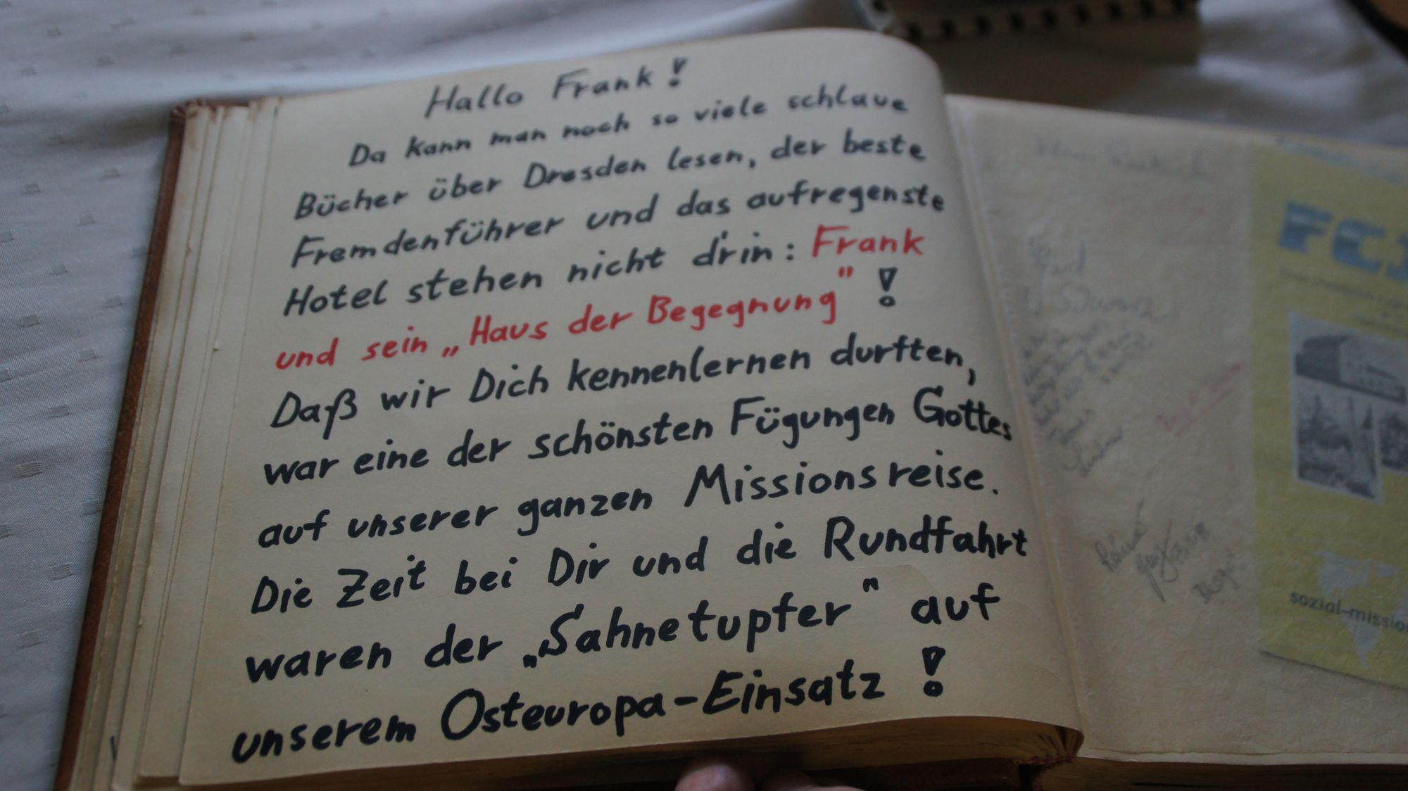 Ich habe 1 spannende Zeit mit Frank und seinem Freundeskreis erlebt und deren beeindruckendes Leben mit Gott. Vielen Dank. Ich hätte gern wieder Kontakt.