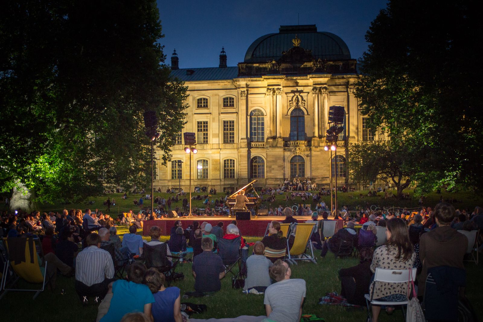 Klaviernacht beim Palaissommer – Foto: PRSo sind allein neun Klaviernächte geplant, mit internationalen Künstlern, wie dem russischen Pianisten Peter Naryshkin, dem Japaner Taketo Otsubo oder der Koreanerin Suryeon No. Es wird Poetry-Slam geben, Singer-Songwriter-Konzerte, ein Lichtfest, Malerei im Park, Yoga, eine Jazznacht, eine Hörspielnacht, und Filmnächte. Insgesamt sind bis zum 25. August rund 140 verschiedene Veranstaltungen geplant.