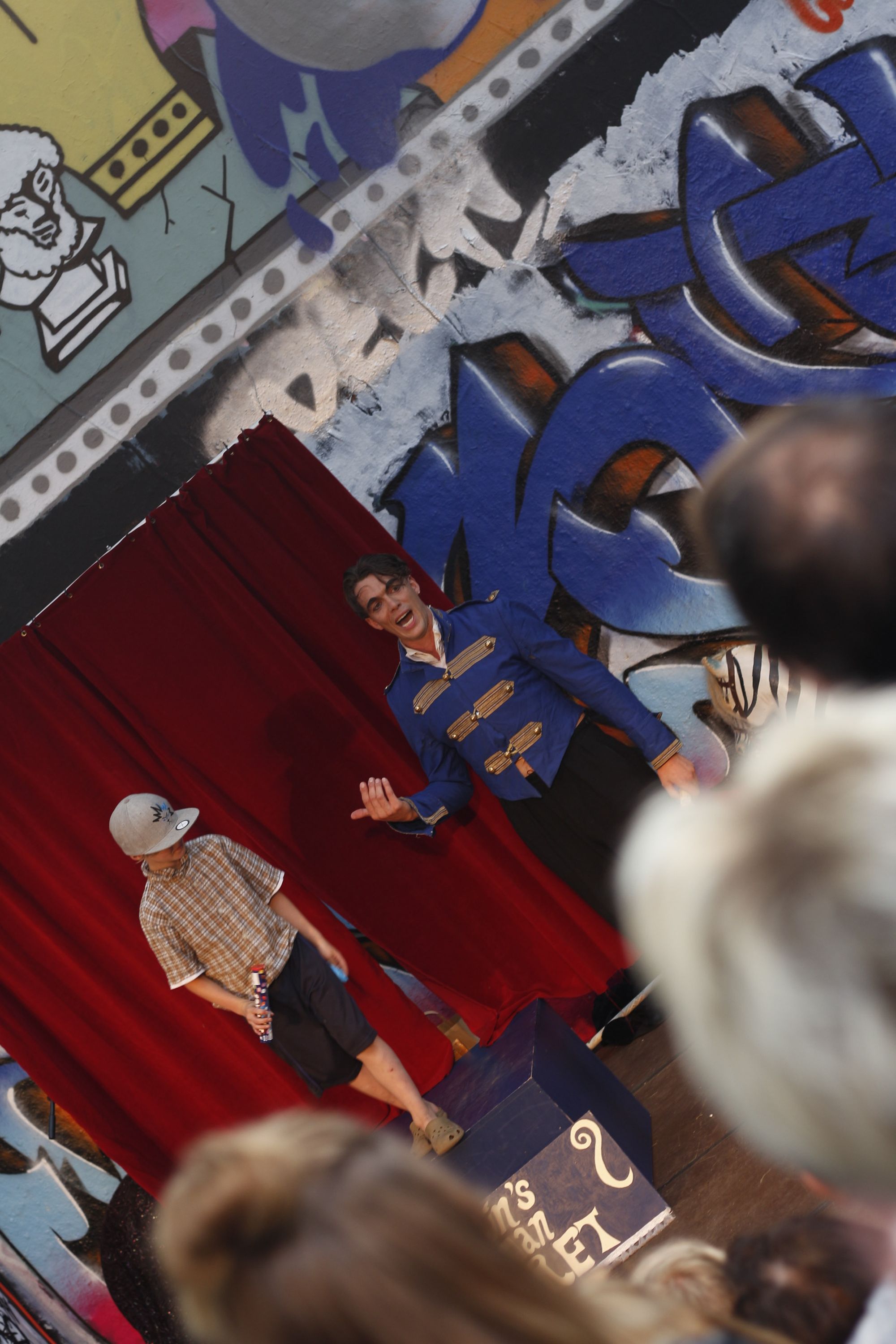 Zu den schönsten Erinnerungen gehören die Versuche der eben aus den Buden Gepurzelten, das Gesehen zu verbalisieren: „Und dann hat er seine Hose hochgezogen und das eine Bein trug einen Rock und das andere einen Anzug und die Knie waren die Gesichter!“(Lösung: One Man Cabaret Merlin) Solche Berichte sorgen für Budenzauber im Kopf 2.0. „Es ist nicht möglich alles zu sehen“, stellte eine Freundin fest. Aber es dürfte möglich sein sich alles erzählen zu lassen. Der Schaubudensommer hinterlässt ein Meer von Geschichten – und einen Picasso aus dem Mal-o-maten an der Wand. Da soll noch einer sagen, es hätte sich nicht gelohnt …