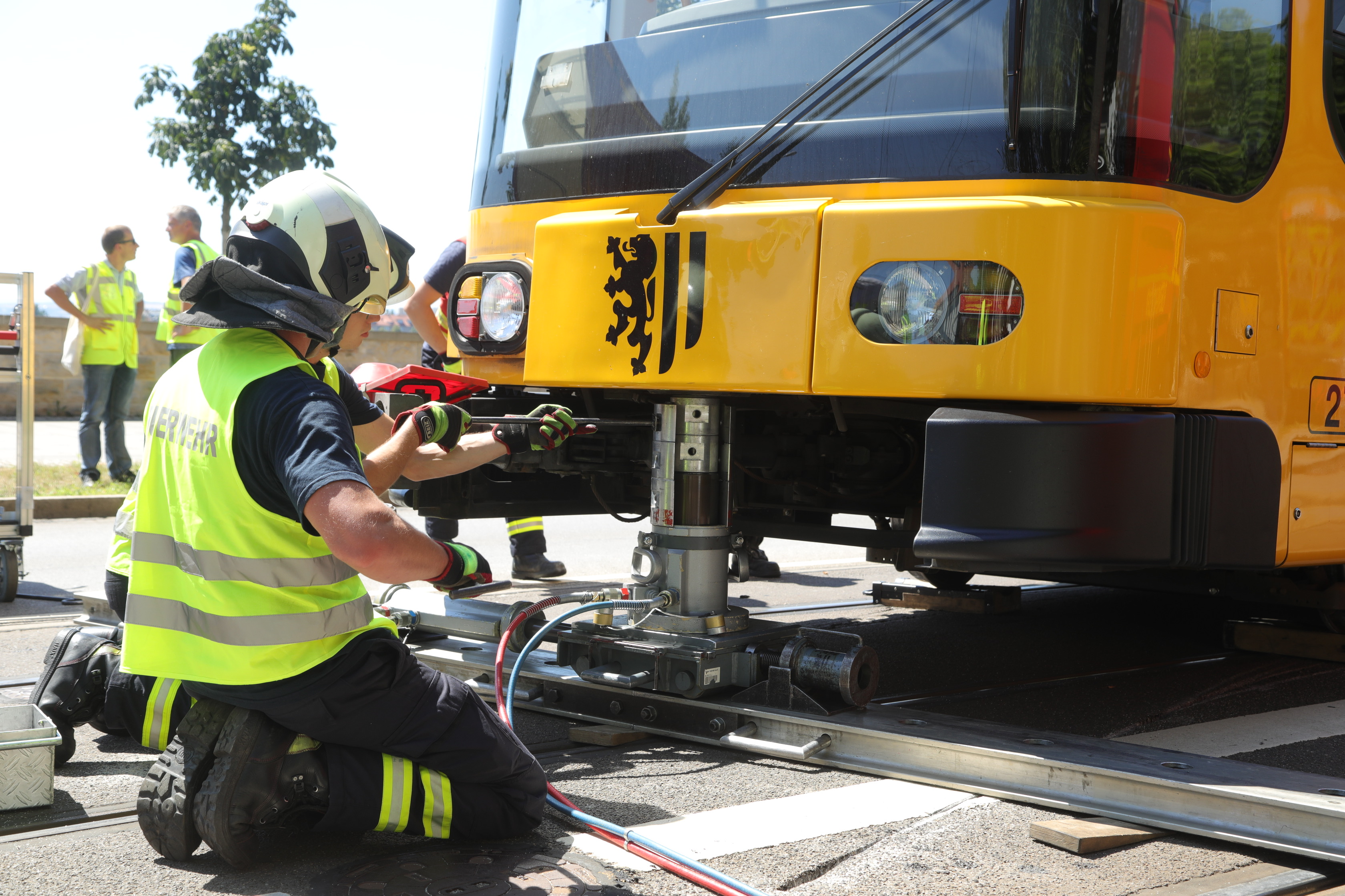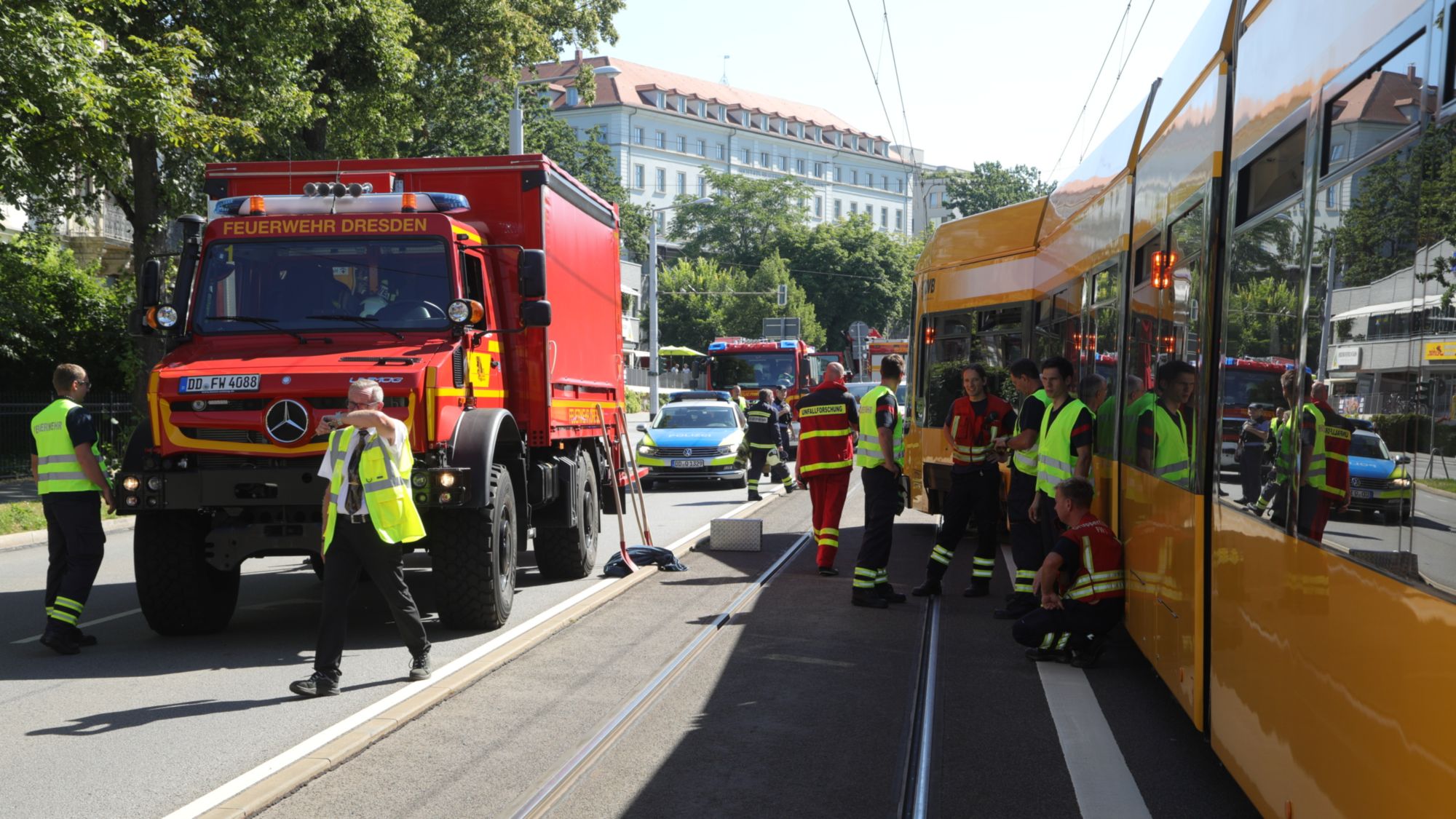 Gegen 12.15 Uhr stand die Bahn wieder auf dem Gleis. Anschließend musste die Feuerwehr noch zusammenpacken und die Unfallstelle wurde geräumt. 12.41 Uhr meldete die DVB das Ende der Behinderung.