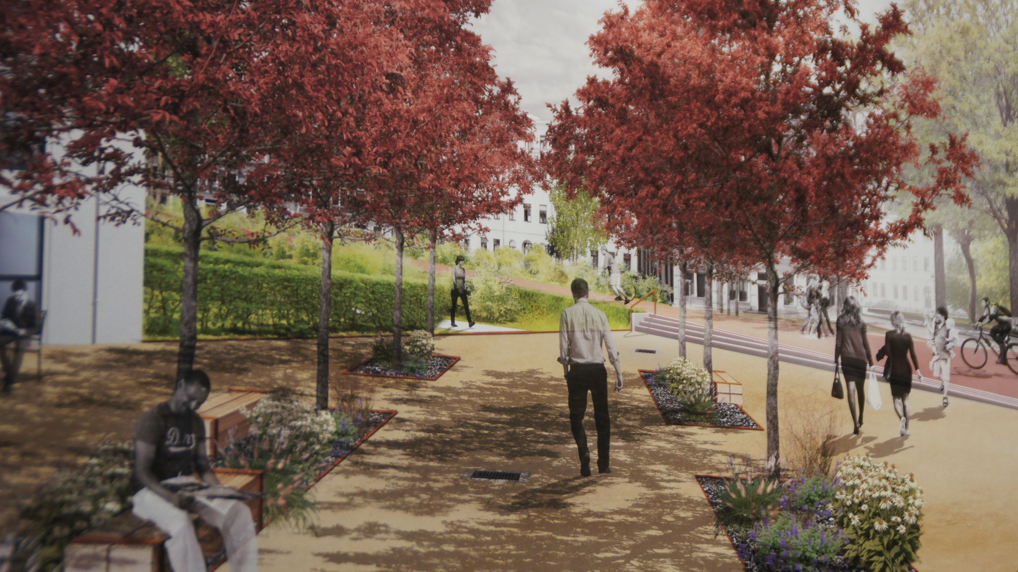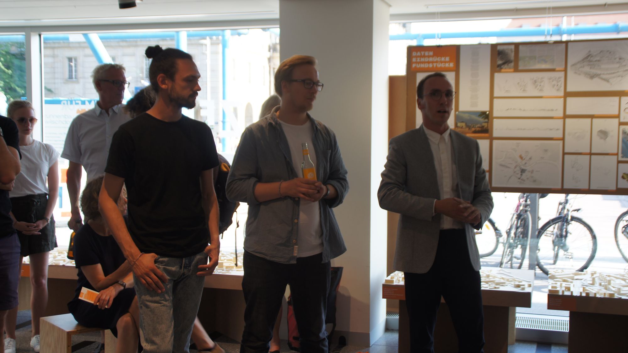 Mit Modellen und Videos, auf Plakaten und Karten wird das Gelände visualisiert und allen Interessierten vorgestellt. Wagenplatz, Gewerbeflächen, Gleispark, Einzelhandel, Ateliers, Spielplätze – oder alles kombiniert? Die Student*innen und Diplomant*innen widmeten sich in ihren Arbeiten unterschiedlichen Nutzungskonzepten. Manuel Bäumler, der die Professur für Städtebau an der TU Dresden inne hat, erklärt in einer einleitenden Rede: „Jetzt werden welche sagen: ‚Oh nein, alles voller Hochhäuser!‘ und andere ‚Wie kann man denn so eine Fläche für einen Park vergeuden‘. Aber darum geht es nicht. Wir möchten Ideen vorstellen und Gelände mitten in der Stadt als Thema mitten in die Stadtgemeinschaft bringen.“