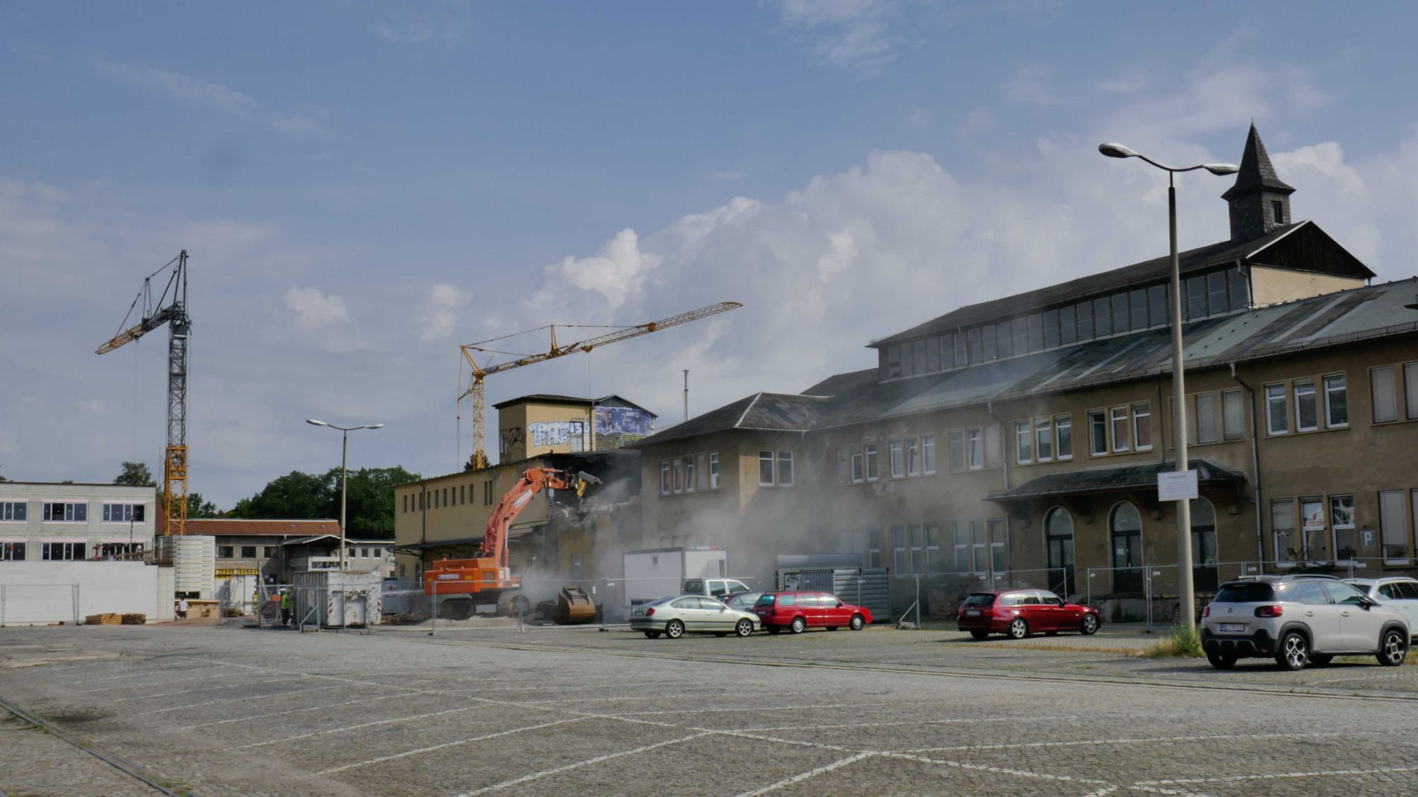 Auf dem Gelände des ehemaligen Gaswerks an der Lößnitzstraße haben weitere Abrissarbeiten begonnen. Auch unter diesen Häusern befinden sich offenbar Altlasten.