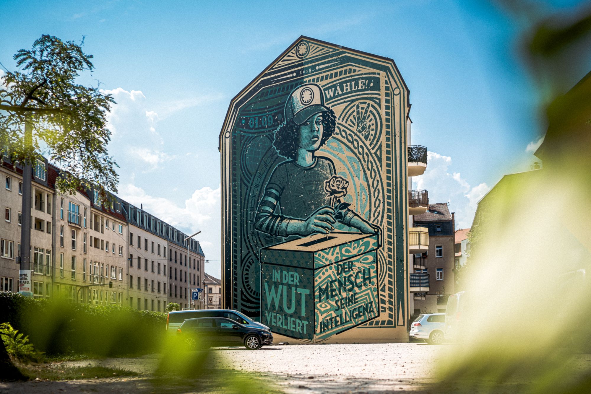 Mit dieser Kampagne im Streetart-Stil wollen Dresdner Kreative kurz vor der Wahl an das Gewissen der Wähler appellieren. Sie wollen dazu motivieren, wählen zu gehen – und dazu aufrufen, nicht aus bloßem Protest Parteien zu wählen, in denen demokratiefeindliche und rassistische Tendenzen geduldet werden.