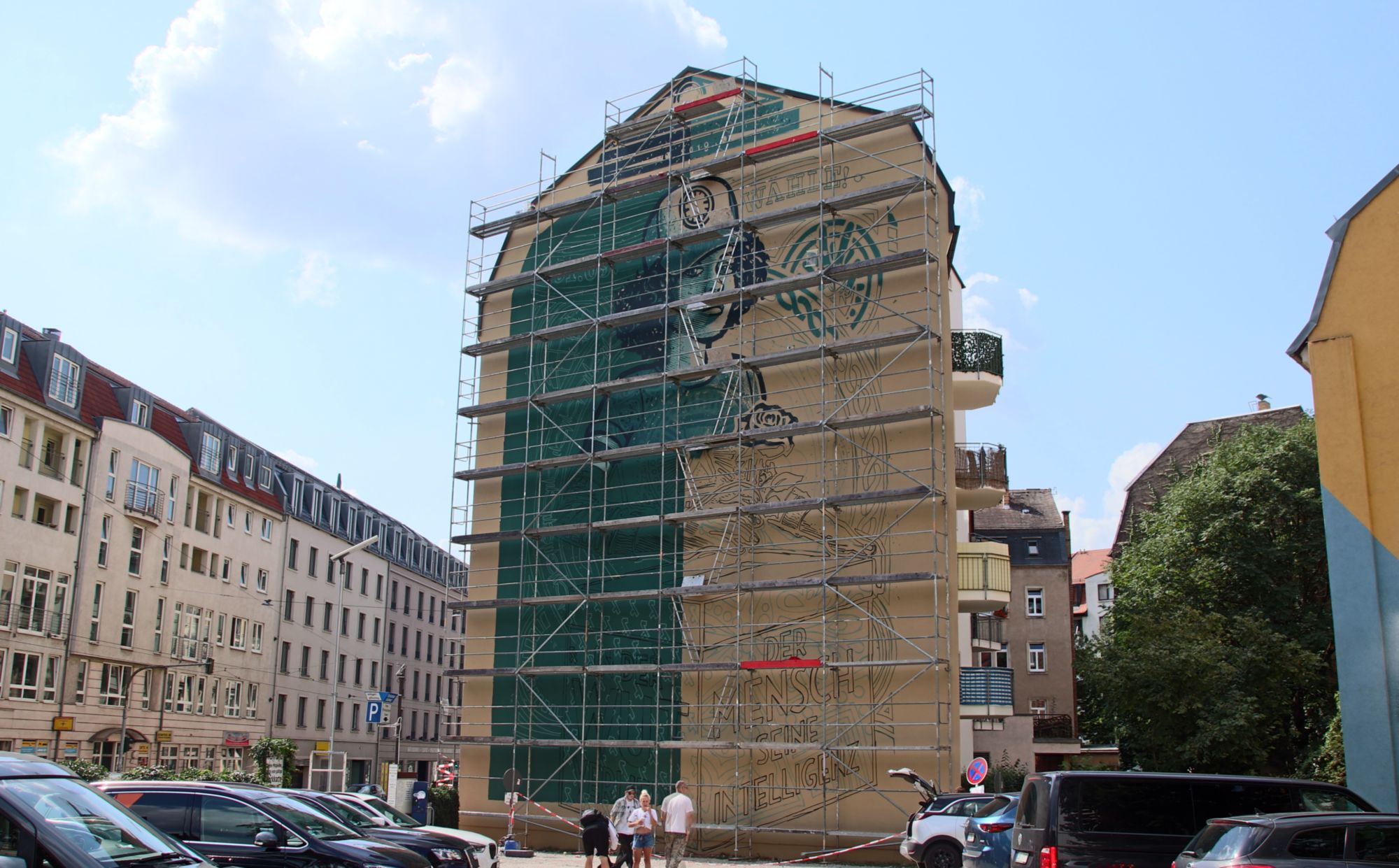 In vier Varianten setzt er Zitate Erich Honeckers, der Bibel, Gustav Mahlers und des Dalai Lama ein, wie „In der Wut verliert der Mensch seine Intelligenz“. Die Kampagne umfasst neben der übergroßen Fassadengestaltung (Mural) auch eine flächendeckende Plakatierung in Dresden und dem Dresdner Umland. Das Mural ist mit seiner Größe von 420 Quadratmetern die größte Werbefläche, die im sächsischen Wahlkampf überhaupt gezeigt wird. Die Aktion ist privat finanziert und durch zahlreiche kostenfrei erbrachte Leistungen der Mitwirkenden möglich.