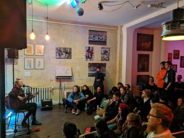 Hinter hohem Glas ist zu sehen, was keine Ware ist: Im Hole of Fame wird experimentiert und präsentiert, aber – hier liegt der Unterschied zur Galerie – nicht verkauft. Tommy: „Wir kommen am Ende des Monats immer bei Null raus.“ In sieben Jahren stellte die stets fluktuierende Gruppe 700 Veranstaltungen auf die Beine. „Unser Publikum ist enorm vielseitig“, sagt Carolin. „Black Metal meets Lesebühne. Wir wünschen uns das auch so. Wir wollen keine Filterblase schaffen.“ Es gibt im HoF keine klare Linie. Darin besteht das Potential des freien Projektortes.