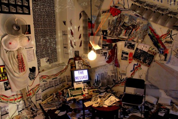Hole of Fame war vor sieben Jahren noch der Name des Sammelkarten- und Rollenspiel-Ladens auf der Königsbrücker Straße 39. Über dem Geschäft hatte sich eine WG zusammengefunden, von der einmal im Monat künstlerische Festivitäten ausgingen. „Guerilla-Aktionen wie Kunst im Keller, Hinterhof-Partys, spontane Sessions“, erinnert sich Eric. Als der Sammelkartenladen auszog, wurde aus Spiel Kunst. Die Gruppe von Kultur-/Schaffenden, darunter Kids Artworks, verortete sich – willig, sich den Raum als Büro und Atelier zu teilen. Bald überwogen die Veranstaltungen im Terminkalender. Die Büronutzer*innen überließen in beiderseitigem Einverständnis den Künstler*innen das Schaufenster.