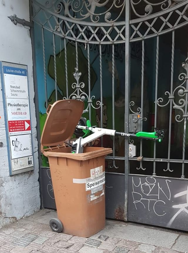 Keine Überraschung, wunderte mich nur, dass es doch so „lange“ gedauert hat bis die ersten Vandalen sich der E-Roller annehmen. Bei der (werbe-bedingten?) Überpräsenz, zum Beispiel auch auf dem Elberadweg stehen selbst des nächtens relativ viele herum, warte ich nur darauf, dass diese Dinger auch im Fluss wiedergefunden werden … was niemand auf die Idee bringen sollte!