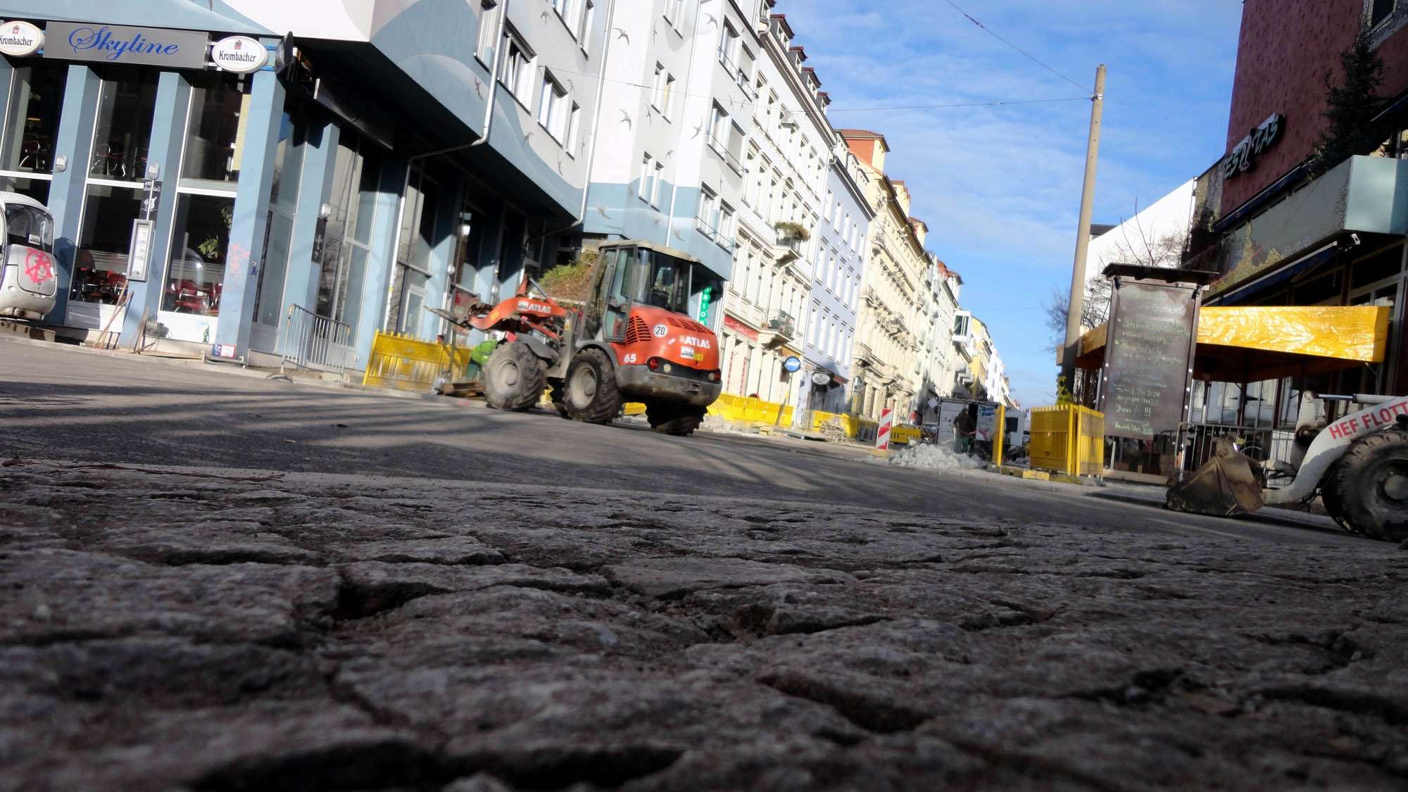 Ich hab am Sonntag die Kreuzung schon durchfahren mit dem Auto…mußte mir zwar eine paar baugeländer beiseite schieben. Aber rückwärts die Alaunstraße zurück ging nicht, DHL hatte ihren Transporter gut in der Straße breit gemacht….also Flucht nach vorn, in die Louise…