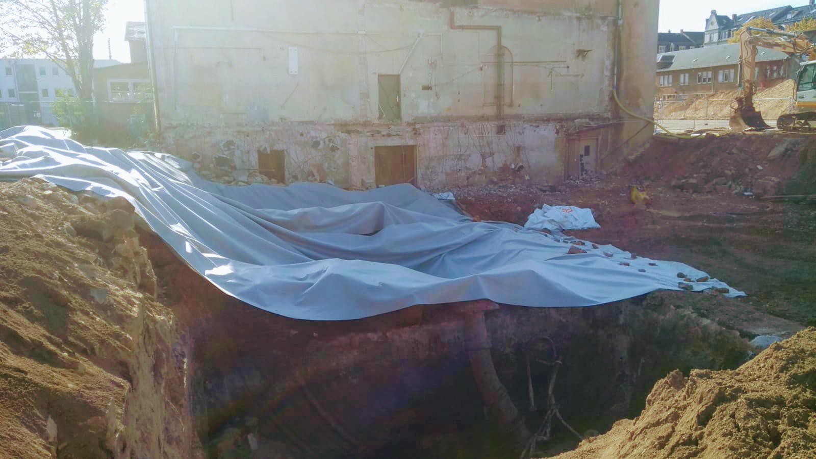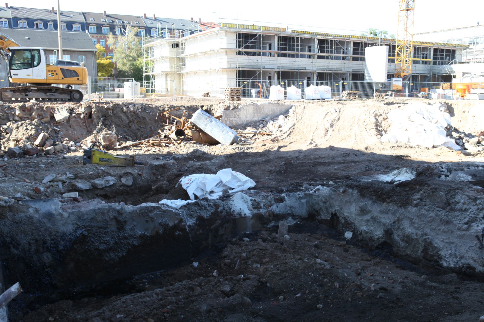 Seit etwa drei Wochen stinkt es im Scheunenhof-Viertel rund um Friedens- und Lößnitzstraße gewaltig. Je nach Windlage dringt der Teergeruch bis ins Hechtviertel. Anwohner*innen haben sich schon mehrfach beim Umweltamt beschwert und auch den Stadtbezirksbeirat Oliver Mehl (Grüne) angesprochen. Gestern gingen nun einige Bürger dem Geruch nach und fanden den Grund: An der Stelle, wo aktuell das alte Tranquillo-Lager abgerissen wird, befindet sich eine Baugrube mit teils flüssigen Teerresten und Altlasten.