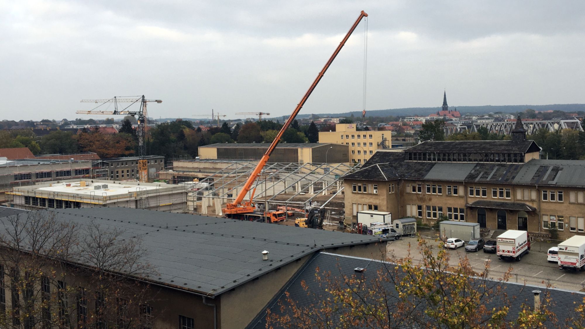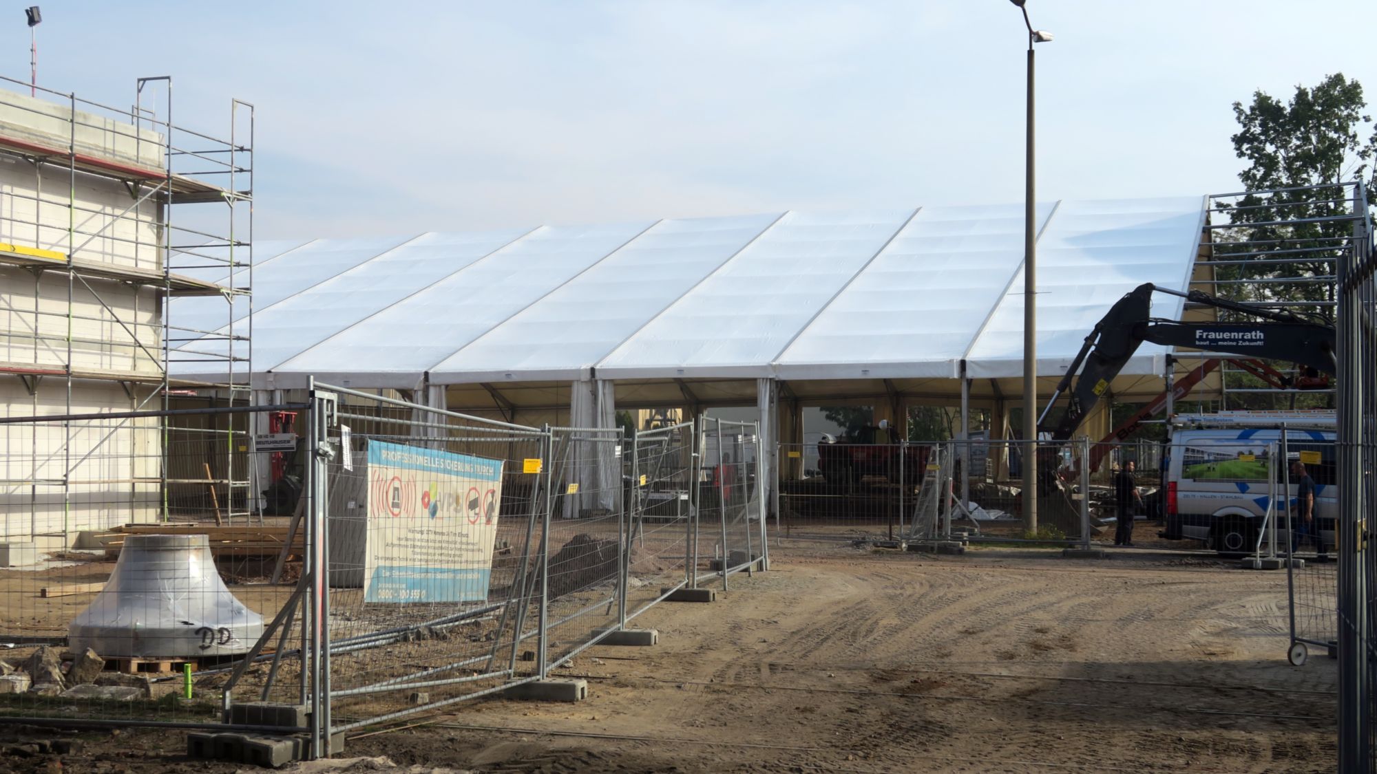 Auf dem Drewag-Gelände neben dem Schul- und Kita-Neubau wurde in den vergangenen Tagen ein Gerüst mit Planen errichtet. Dabei handelt es sich um die von der Drewag-Sprecherin Gerlind Ostmann angekündigte Einhausung.