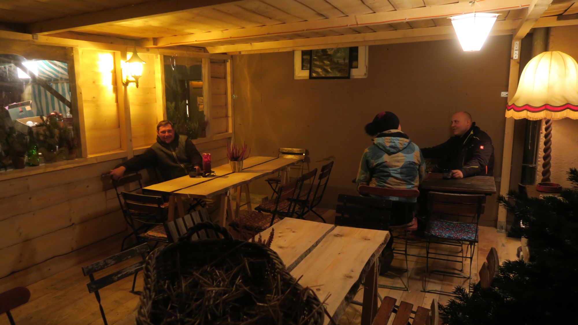 Normalerweise wird hier auf dem Gelände getrödelt, im Frühjahr gibt’s dazu Pflanzen, und vor Weihnachten eben Bäume und Reißig – das Fünf-Kilo-Bündel für ’nen Zehner. In der Trödelhalle gibt es noch weiteren weihnachtlichen Nippes wie geflügelte Jahresendfiguren, Nussknacker oder Kerzenständer.