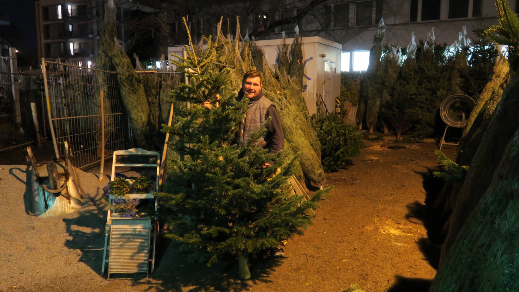 Auf Wunsch und gegen Aufpreis werden die Bäumchen auch nach Hause gebracht. Aber der Trödelmeister hat auch einige Parkplätze auf der Rückseite des Geländes angemietet. „Einfach reinkommen, Parkzettel holen und ganz in Ruhe den Baum aussuchen“, sagt Hellmich.