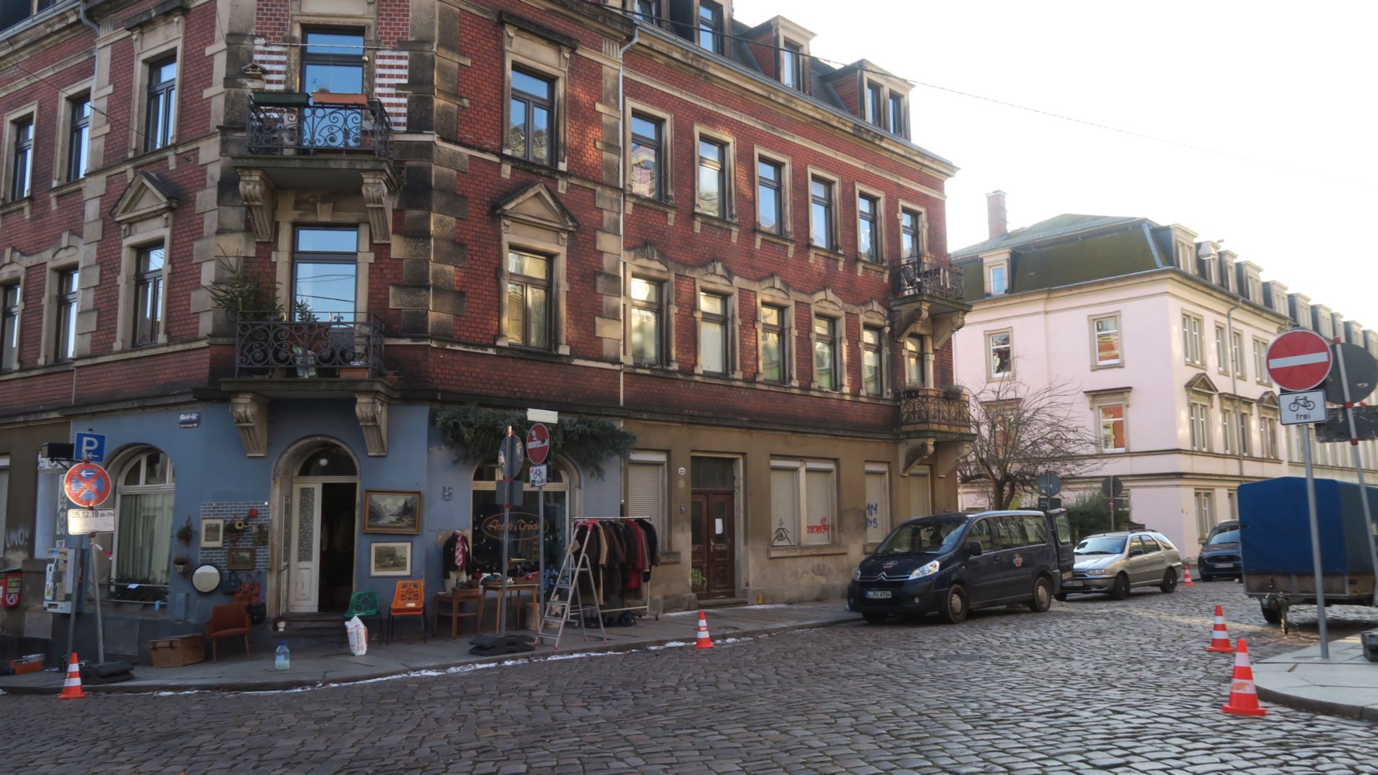 Die Ecke Nord an der Kreuzung zwischen Frühling- und Nordstraße sah heute Morgen auf einmal ganz anders aus. Aus dem beliebten Nachbarschaftstreff ist ein Trödelladen geworden und die beiden Straße wurden in Ritter- und Lindenstraße umbenannt. Eifrige Französinnen verschütten Streusalz und können auch nicht zur Aufklärung beitragen.