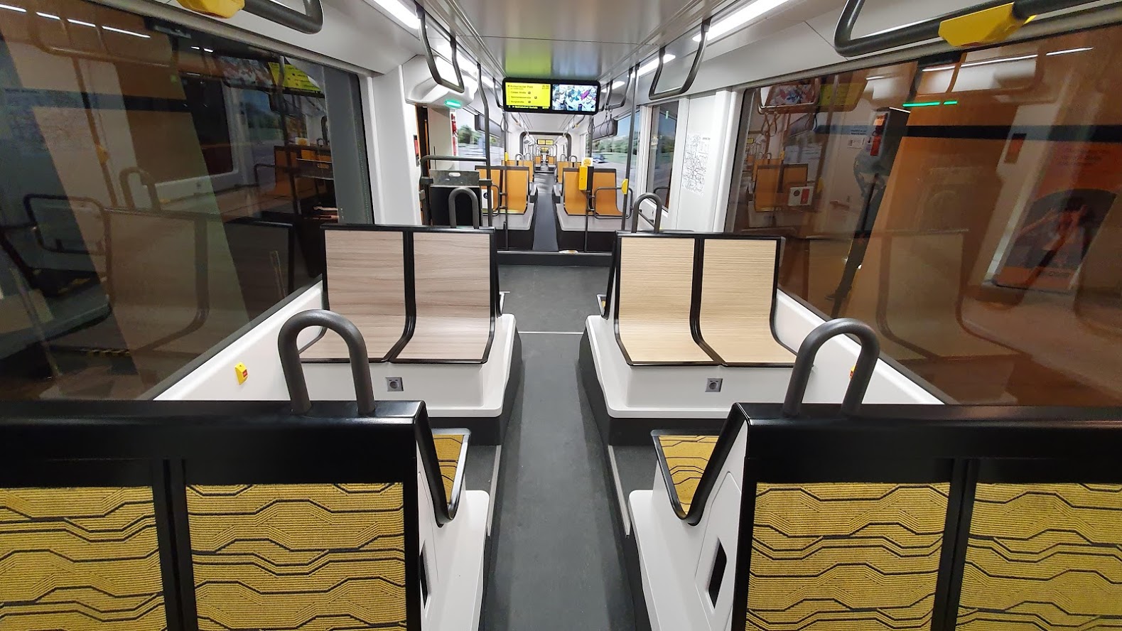 - Patentierte Leichtbausitze des Herstellers, ob es die Polster- oder die Holzvariante wird sollen die Fahrgäste entscheiden. Sandwich-Fußbodenplatten verringern das Gesamtgewicht.