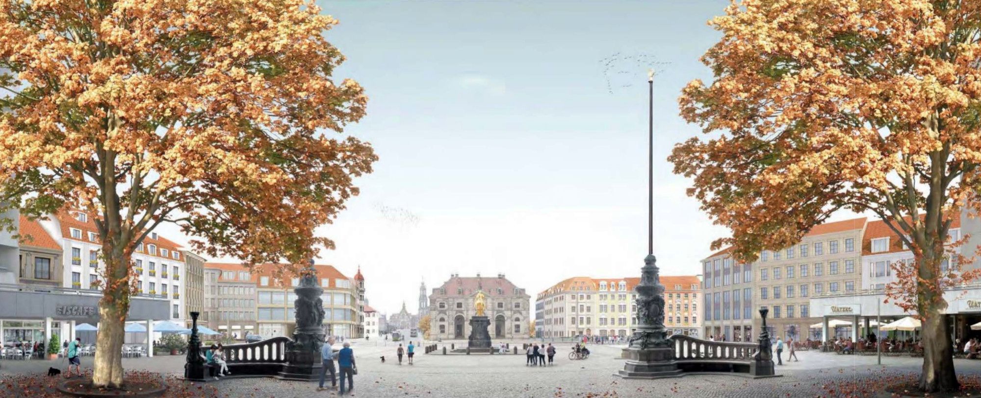 Der Platz soll restauriert und als grüner Platz mit hoher Aufenthaltsqualität behutsam weiterentwickelt werden, die Brunnen sind zu sanieren. Außerdem wird gefordert, dass die Erweiterung des Hotels Bellevue etwas verkürzt wird, damit das Japanische Palais als Denkmal besser zur Geltung kommt.