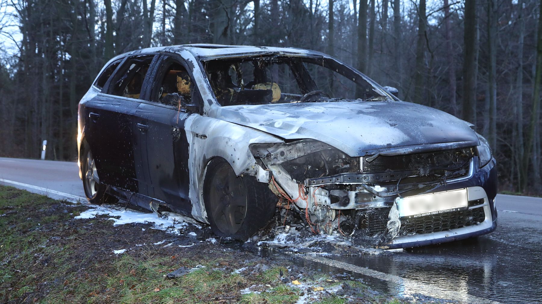 Heute morgen kam es gegen 6.15 Uhr auf der Radeberger Landstraße zu einem PKW-Brand. Die Fahrerin eines Ford Mondeo war mit ihrem Wagen in Richtung Dresden unterwegs.