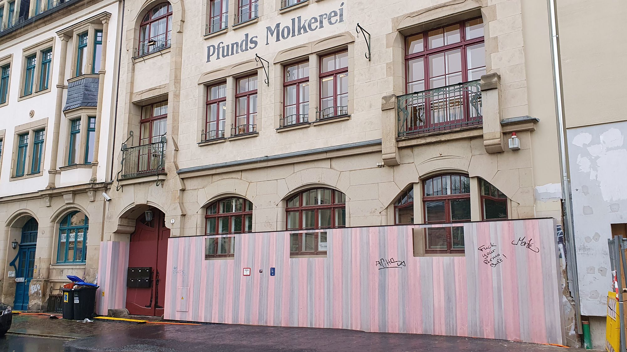 Die Baustelle „Pfunds Höfe“ befindet sich in den letzten Zügen, noch in diesem Jahr sollen hier die ersten Mieter einziehen. Die Anzahl der nächtlichen Graffiti in dem Bereich der Prießnitzstraße hatte auch ohne die Rosa-Zaun-Maßnahme in der Vergangenheit schon erheblich nachgelassen. Seit der Club „Sabotage“ vor knapp drei Jahren geschlossen hatte, waren in dem Bereich der Neustadt wesentlich weniger nächtliche Passanten unterwegs. Und mit der benachbarten Baustelle sank das Sprühaufkommen nochmals.