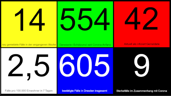 Die Ministerpräsidenten der Länder haben sich mit der Bundesregierung verständigt, dass Lockerungen regional wieder zurück genommen werden, wenn in einem Landkreis bzw. einer kreisfreien Stadt in einer Woche mehr als 50 Neuinfektionen pro 100.000 Einwohner getestet werden. Dieser Wert wurde in Dresden nie erreicht, er liegt seit Anfang Mai kontinuierlich unter 5, am heutigen Sonntag hat er mit 2,5 den niedrigsten Stand seit dem 15. März erreicht.