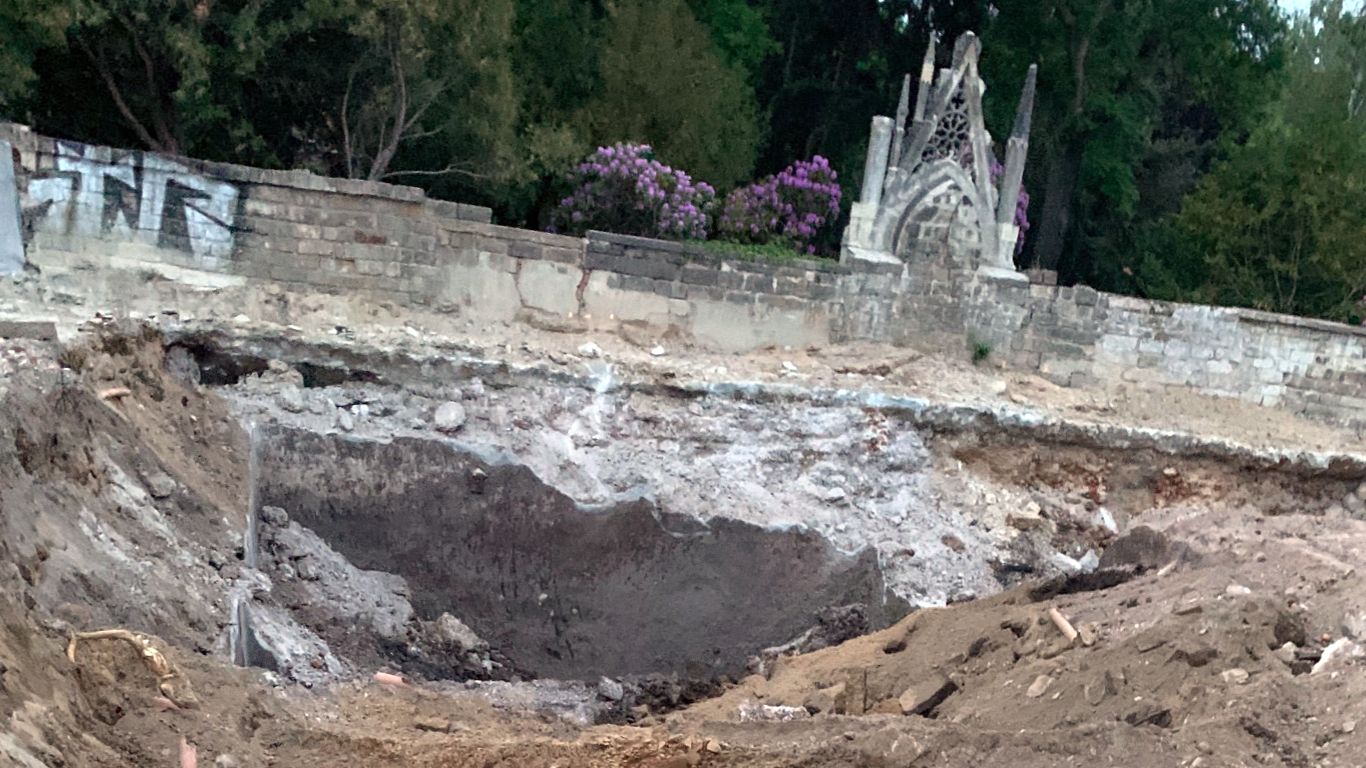 Nun wird aber eine weitere Grube saniert in der Nähe der Friedhofsmauer. Hier befanden sich einst eine Kfz-Halle, später waren hier unter anderem die Nikifaktur und ein Jeans-Schneider ansässig. Anwohner berichten, dass diese Grube nicht abgedeckt ist. Aus einem rund acht mal acht Meter großem Loch stinkt es.