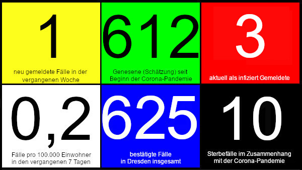 Am Freitag gab es eine neue bestätigte Corona-Infizierung in Dres(den. Damit haben offenbar die zahlreichen Lockerungen in den vergangenen Wochen und auch die größeren Menschenmengen bislang zu keinem nennenswerten Anstieg geführt. Die aktuelles Lockerung: es dürfen wieder Shishas geraucht werden. Aktuelle Einschränkungen und Verordnungen gibt es auf der Seite des Gesundheitsministeriums.
