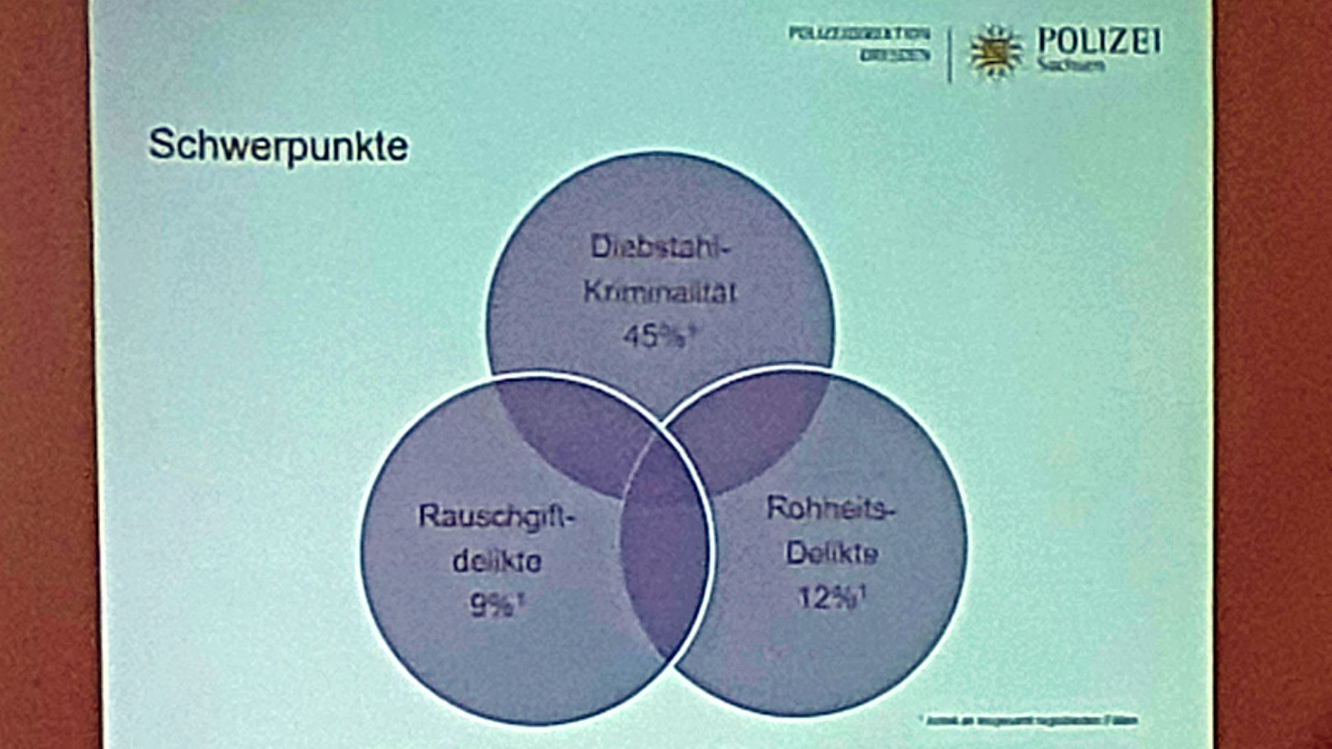 Zum Schluss präsentierte Polizeirat Fischer noch einen Einblick in die Äußere Neustadt. Hier wurden 3.308 Fälle registriert, das ist ein Rückgang um 13,9 Prozent gegenüber dem Vorjahr.